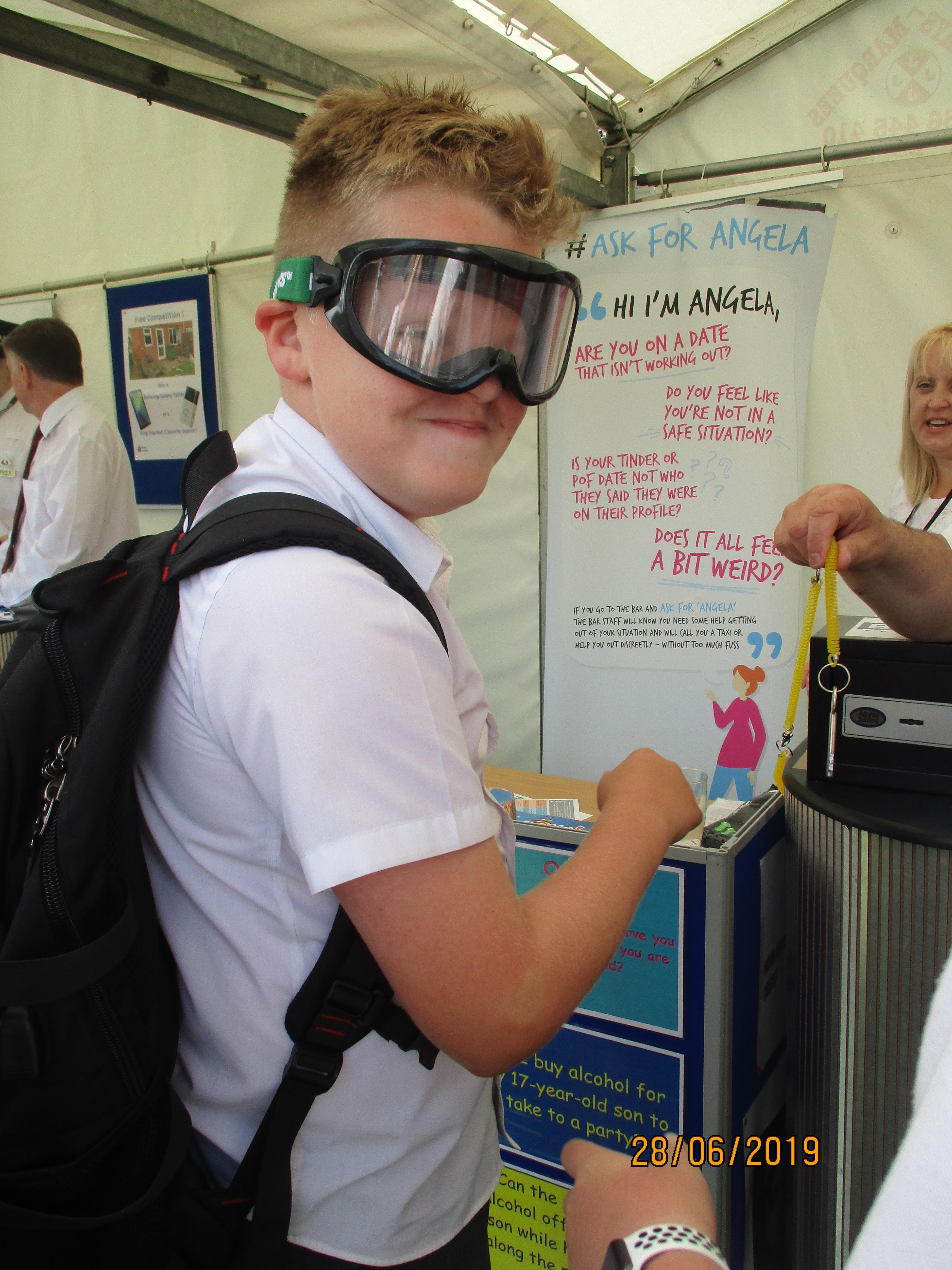 *Learning the dangers of alcohol and drugs - including wearing 'drunk' goggles and trying to get a key in a door