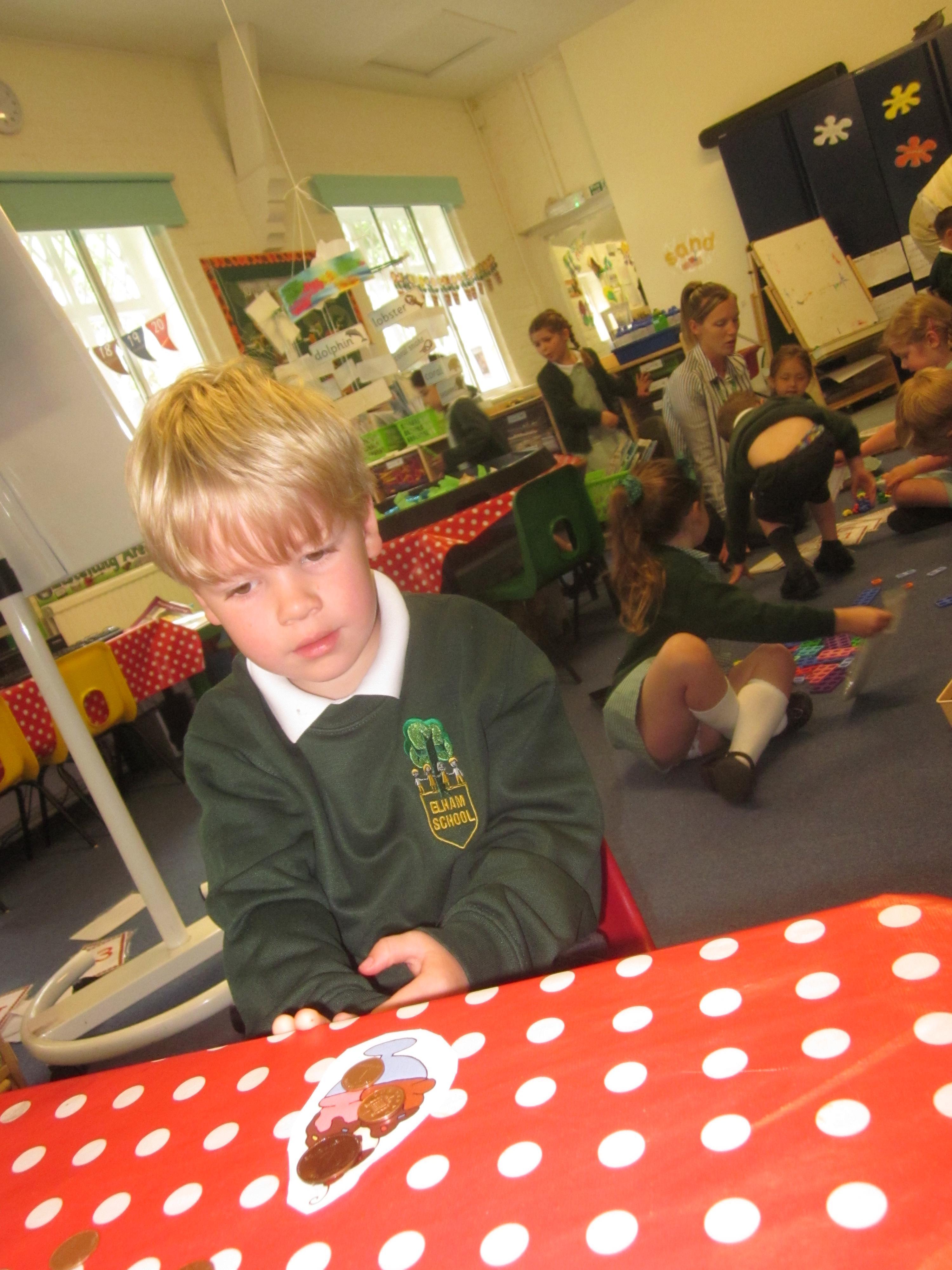Our Topic this term will be about the sea. We've had a look at rock pools this week and thought about all of the creatures that live in them. We wrote about the creatures using adjectives. In our maths learning we we have been recognising coins and adding values to 10p.
