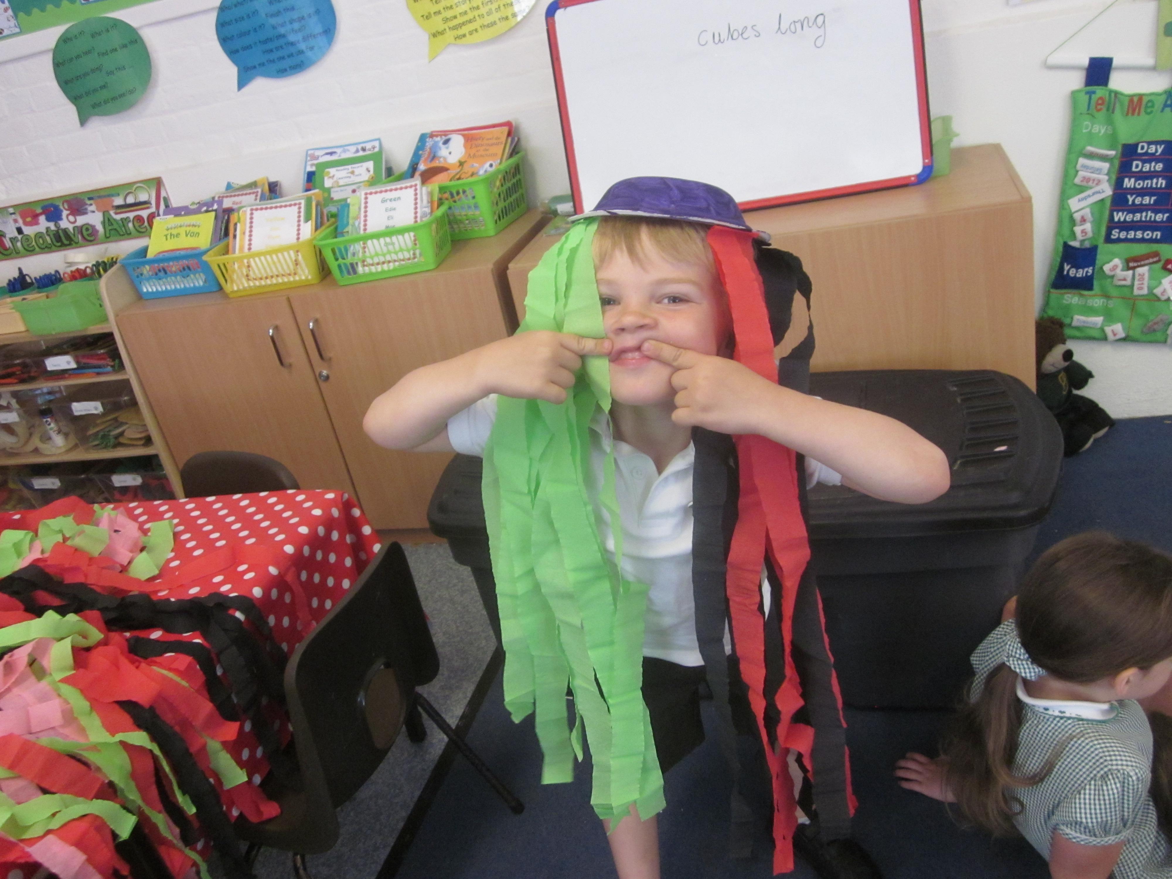 We have also been learning about Pirates and have read the story 'Pirates love Underpants' we designed our own pirate underpants and described them using interesting adjectives.