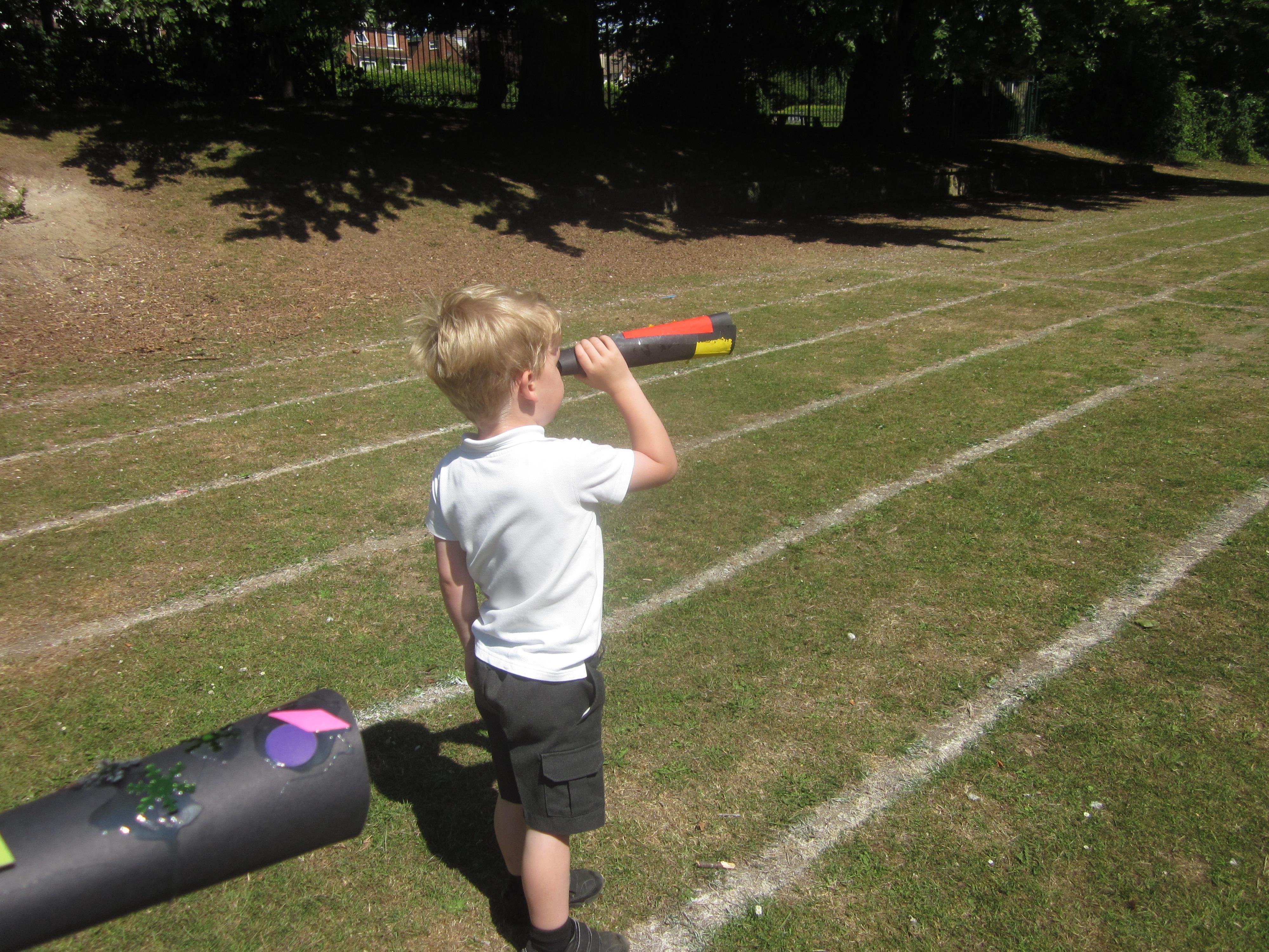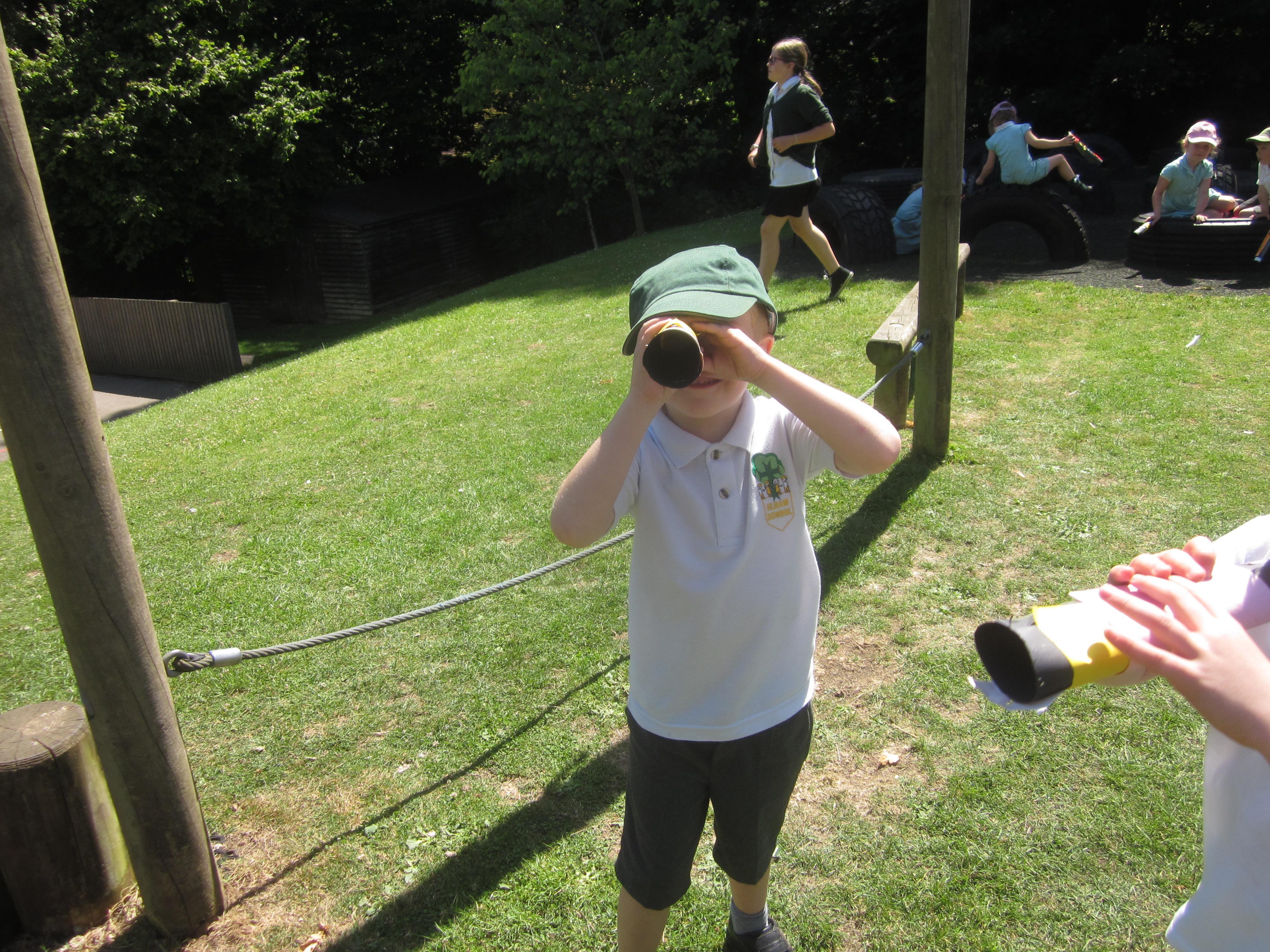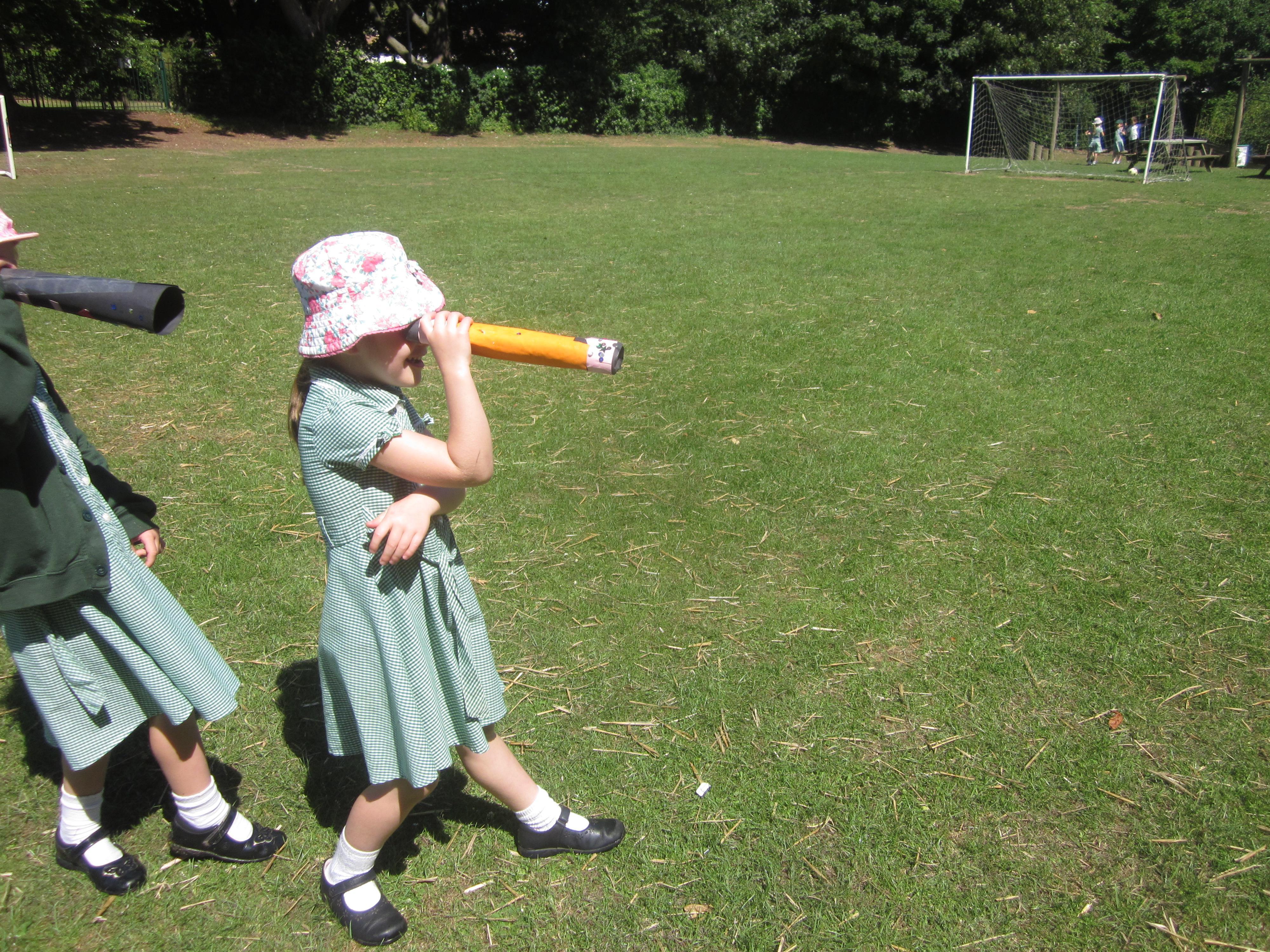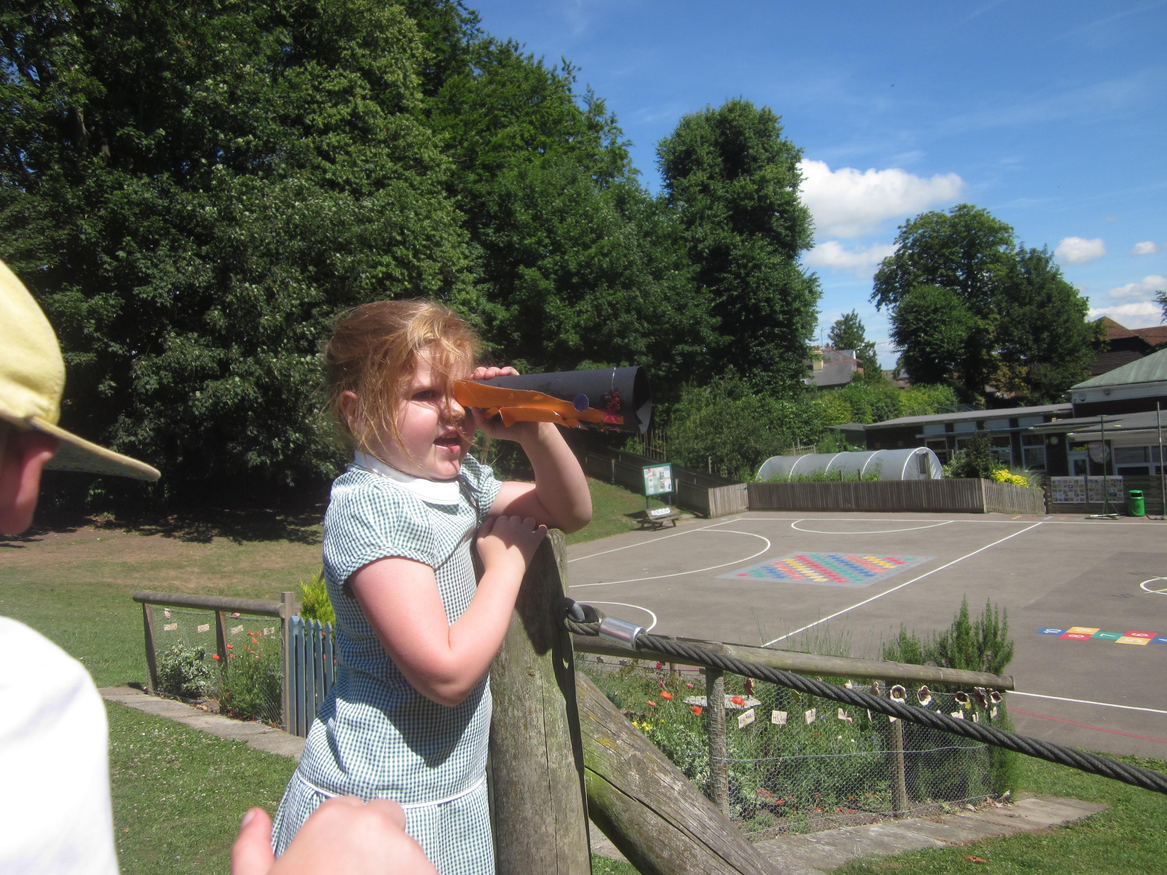 We have still been learning about pirates this week. We took our telescopes on to the field to see what we could see. We wrote sentences about what we could see through our telescopes.