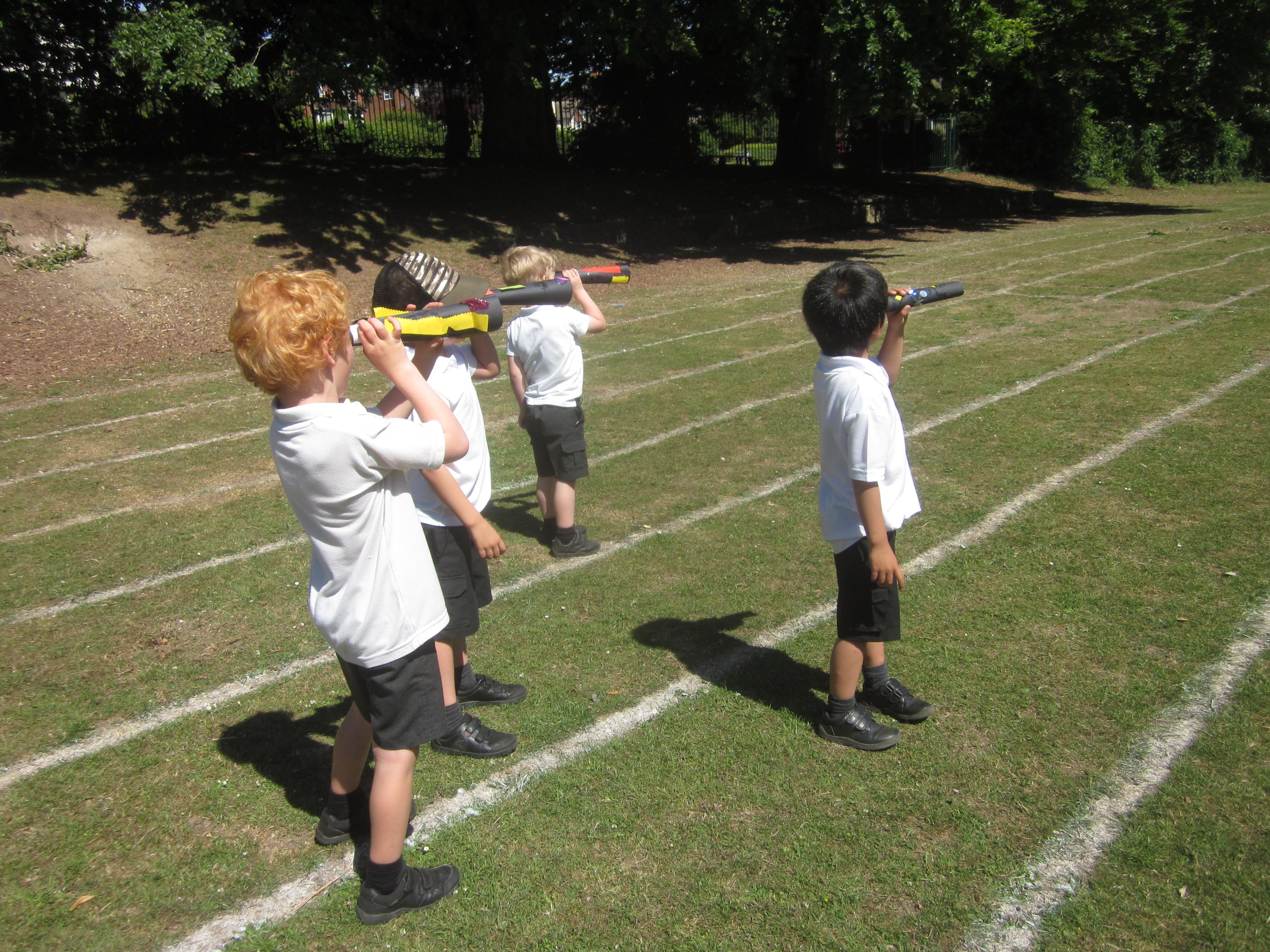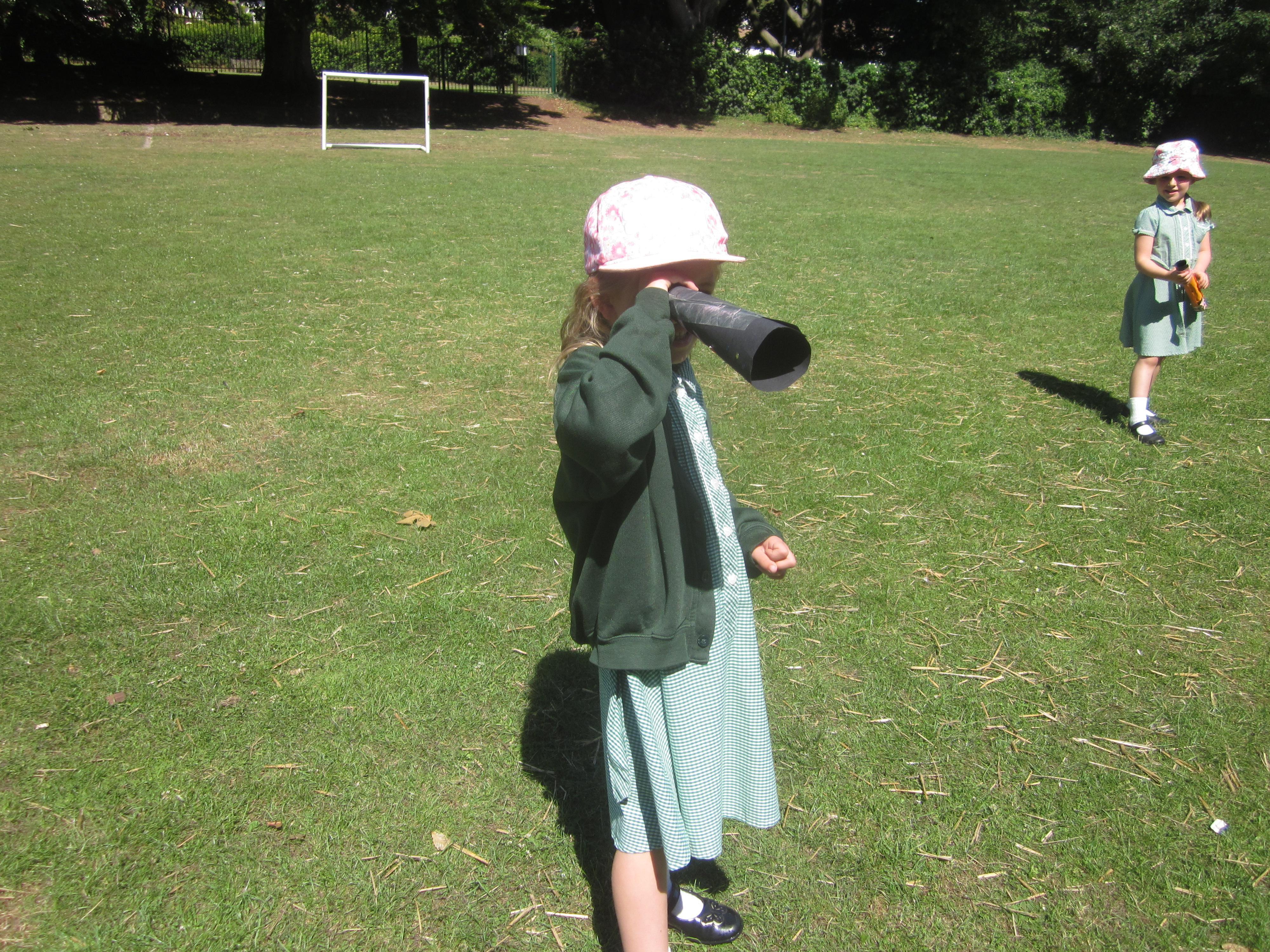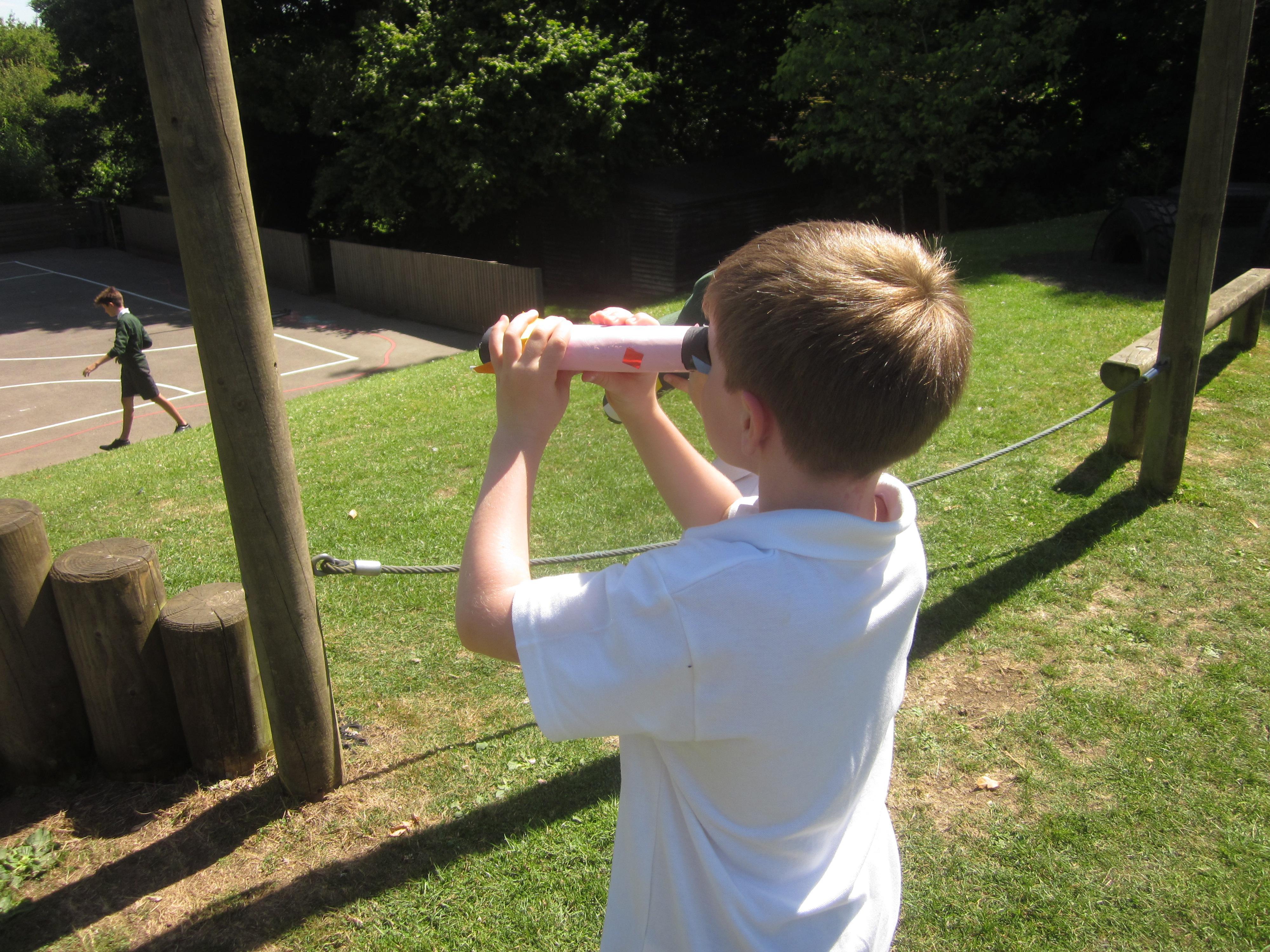 We have still been learning about pirates this week. We took our telescopes on to the field to see what we could see. We wrote sentences about what we could see through our telescopes.