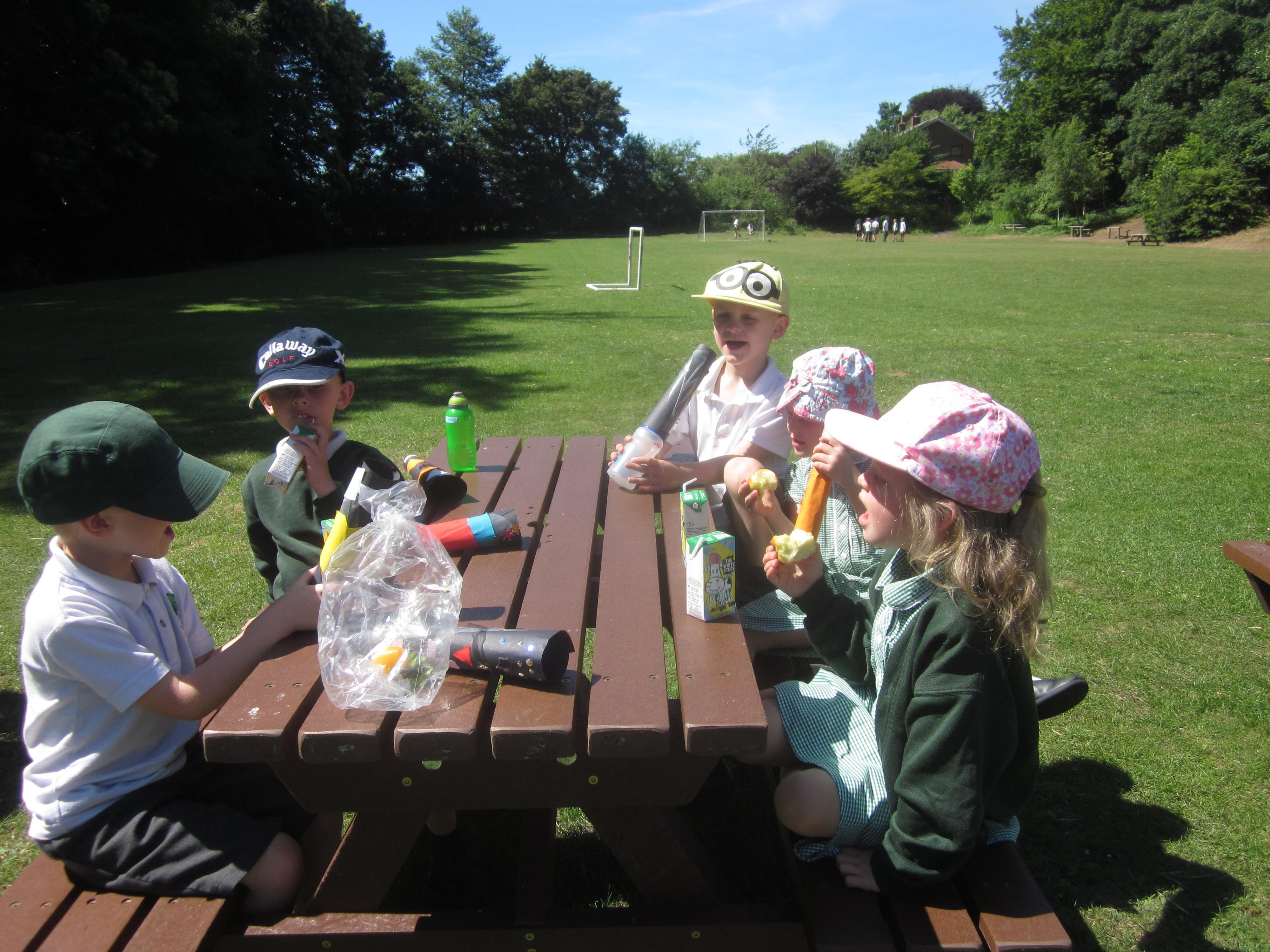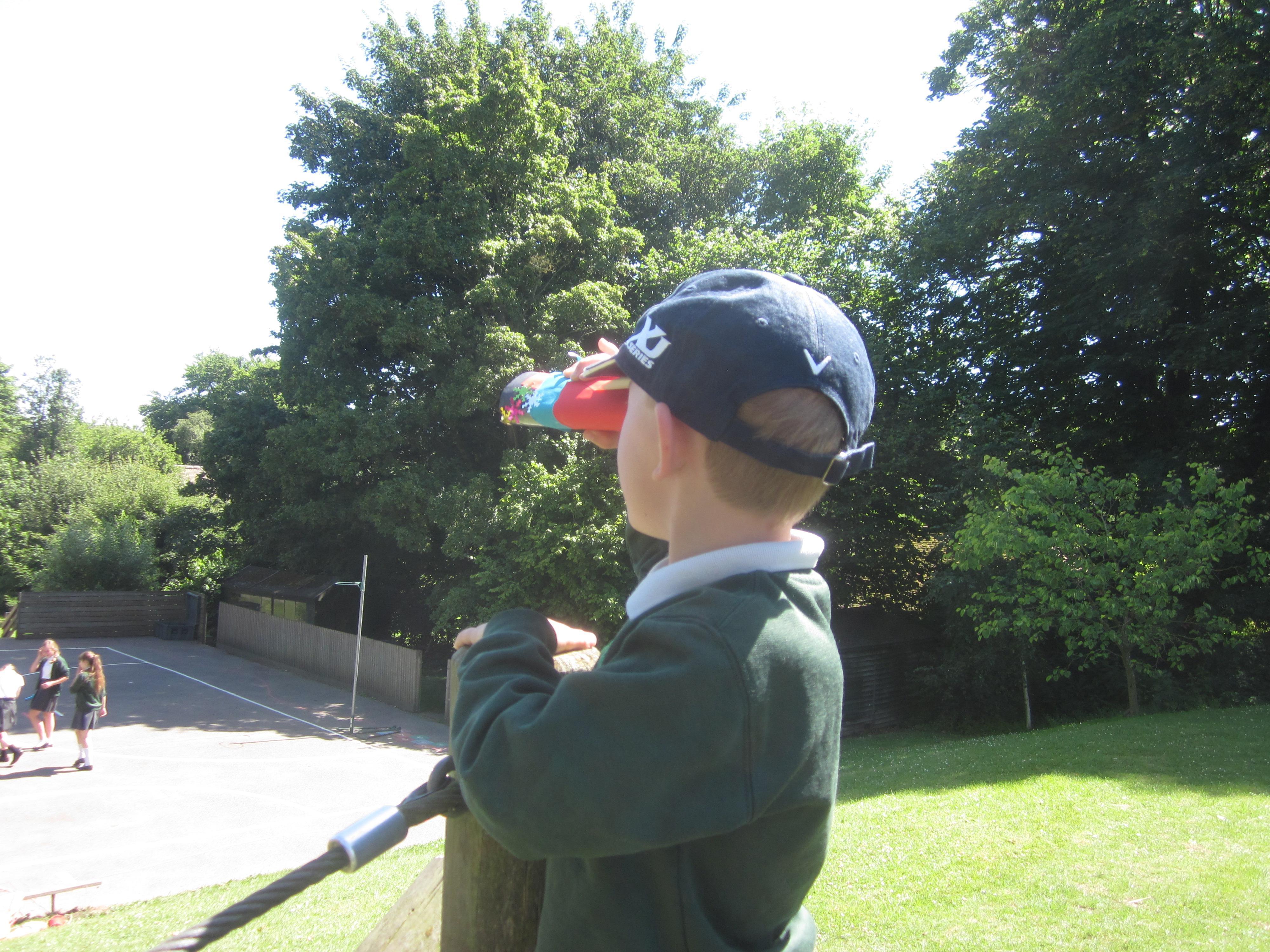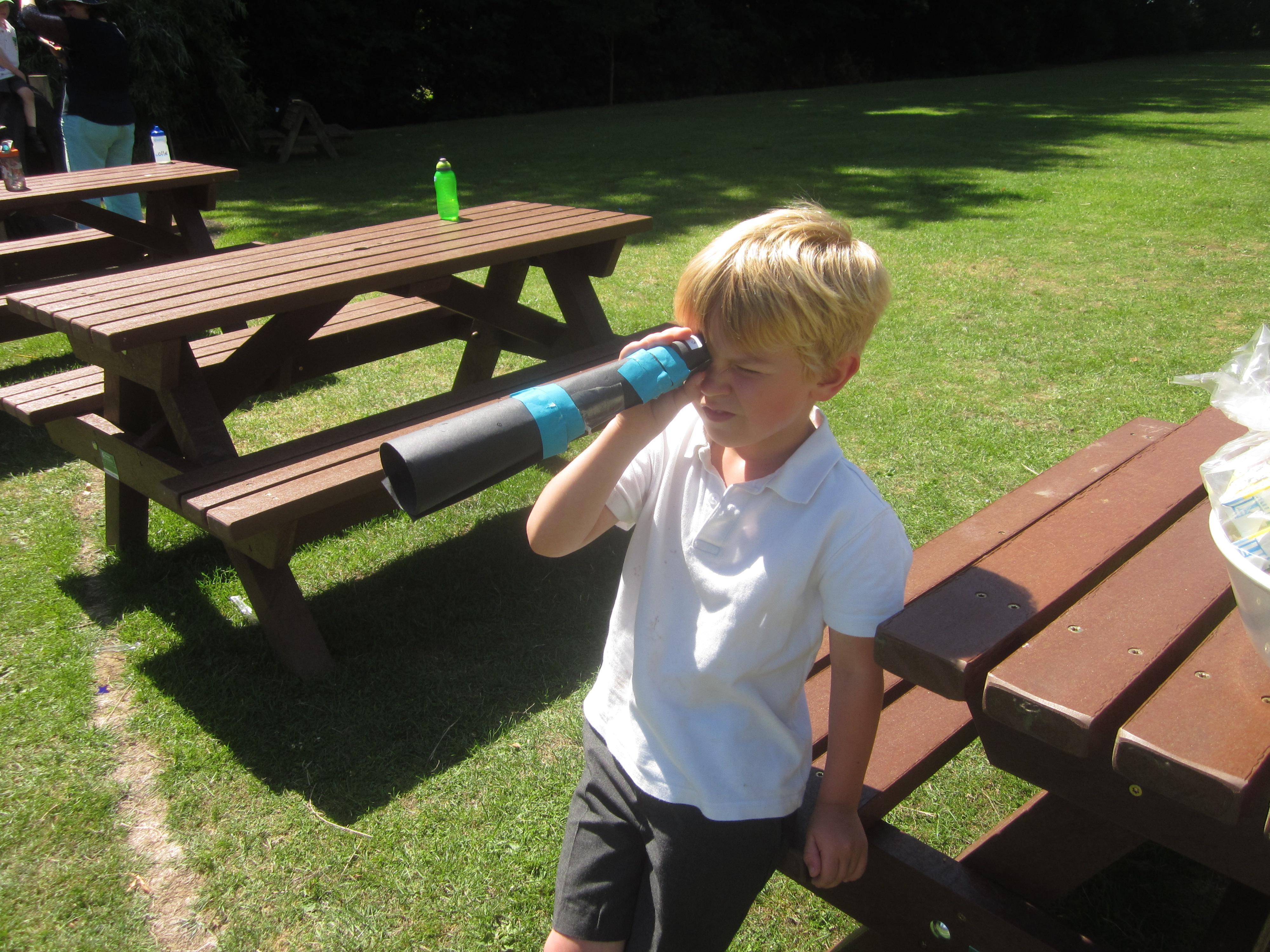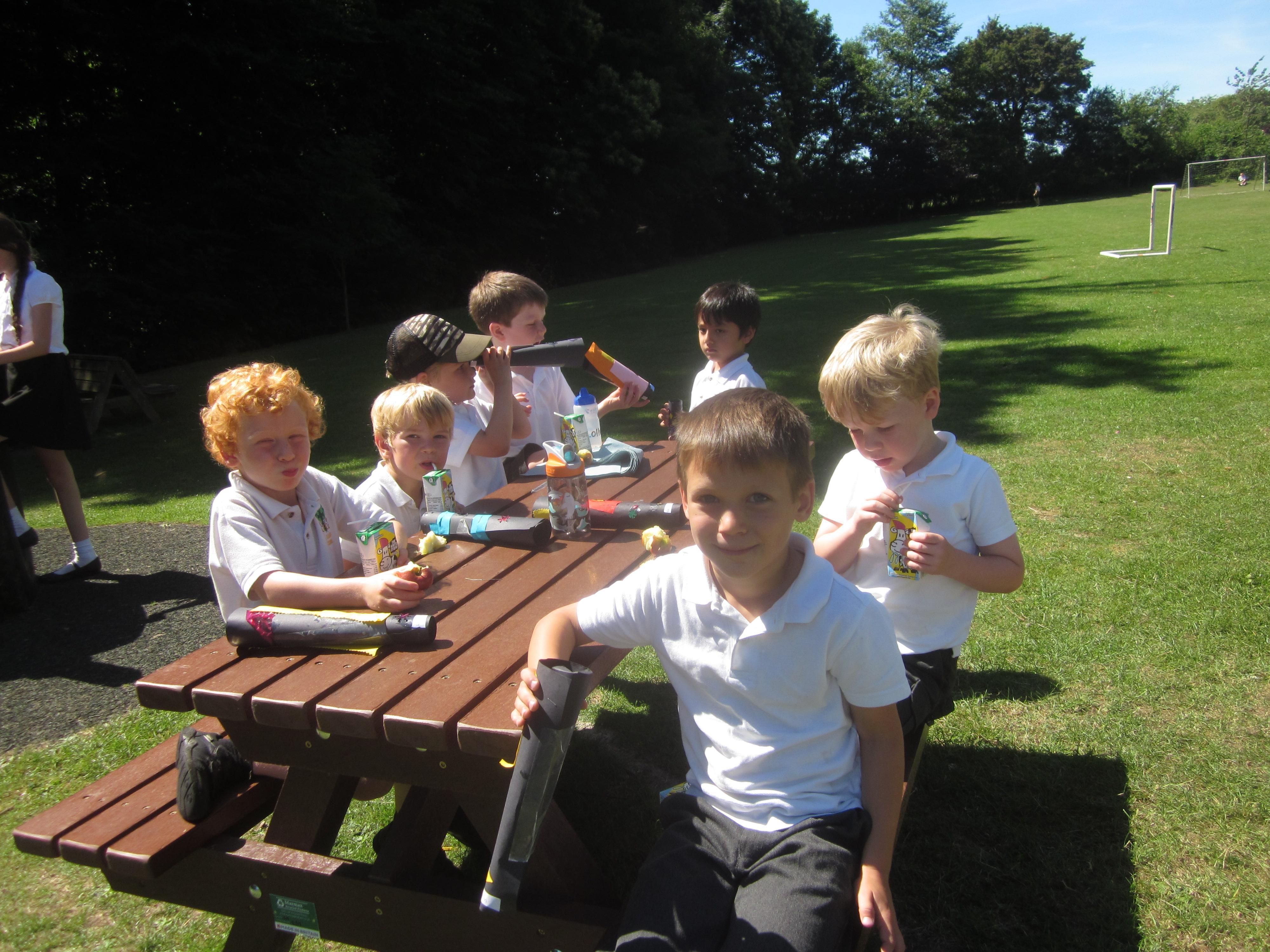 We have still been learning about pirates this week. We took our telescopes on to the field to see what we could see. We wrote sentences about what we could see through our telescopes.