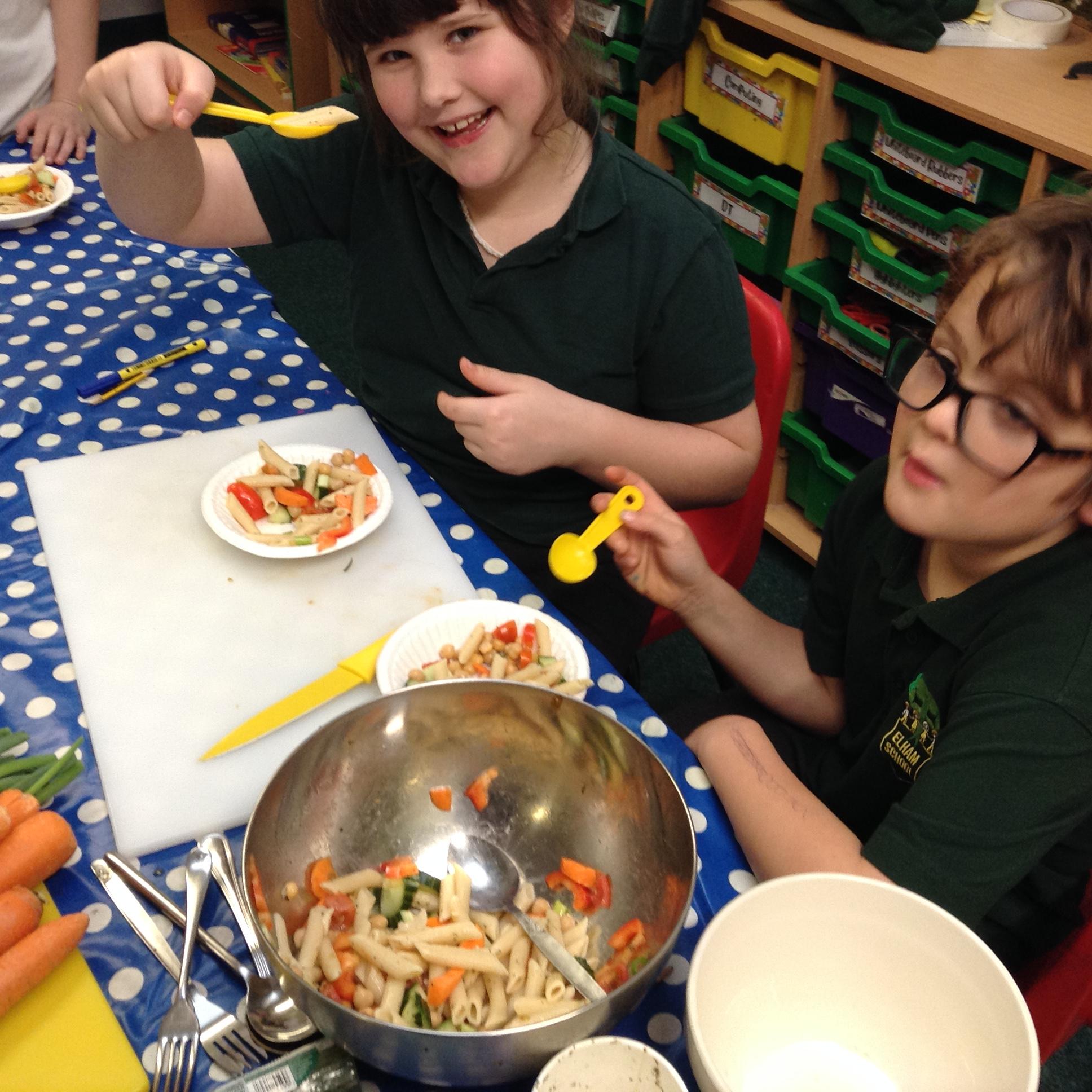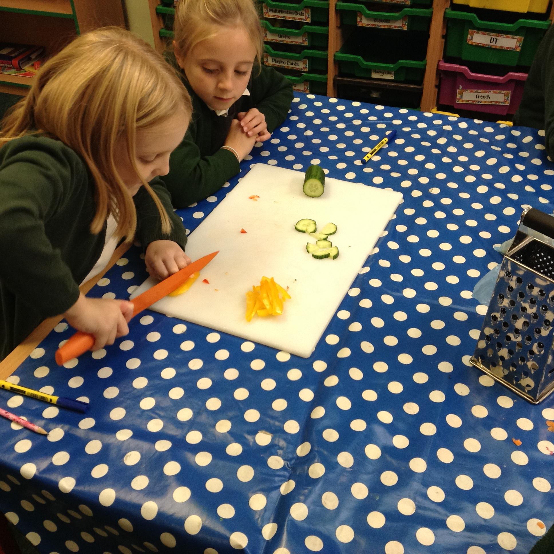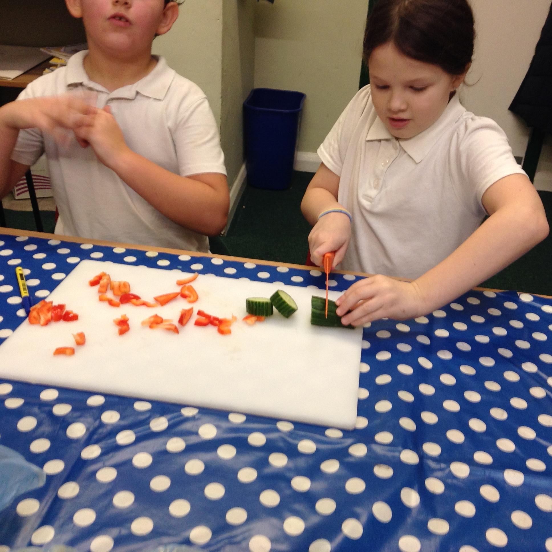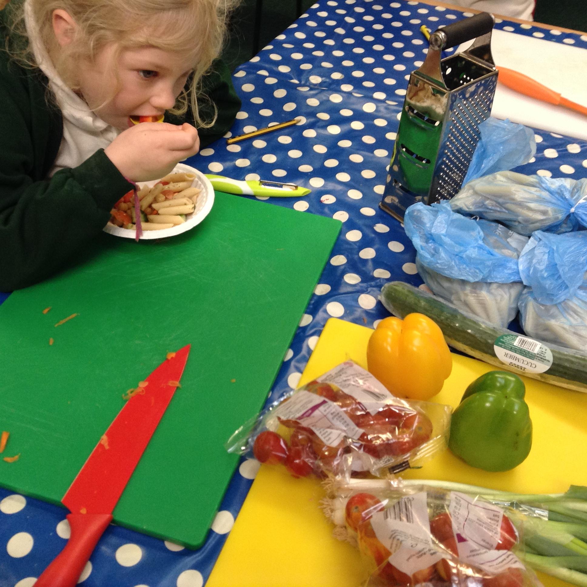 After finishing our final assessment this morning we spent the afternoon completing this terms DT topic which involved us all making a pasta salad. Children put their chopping and dicing skills to the test and in groups they made a pasta salad, which most of them were brave enough to try!