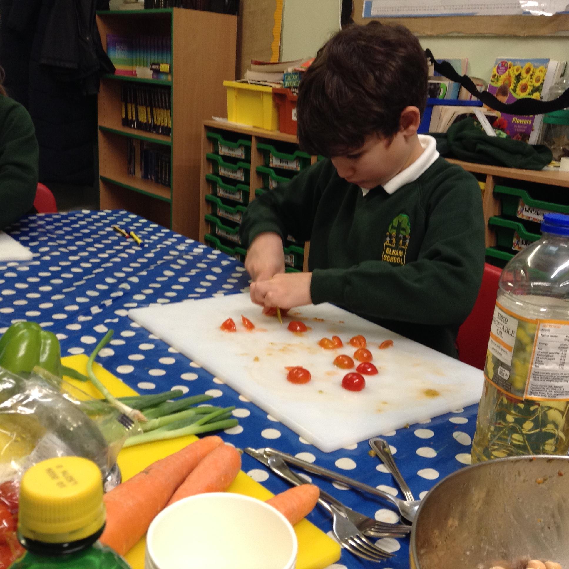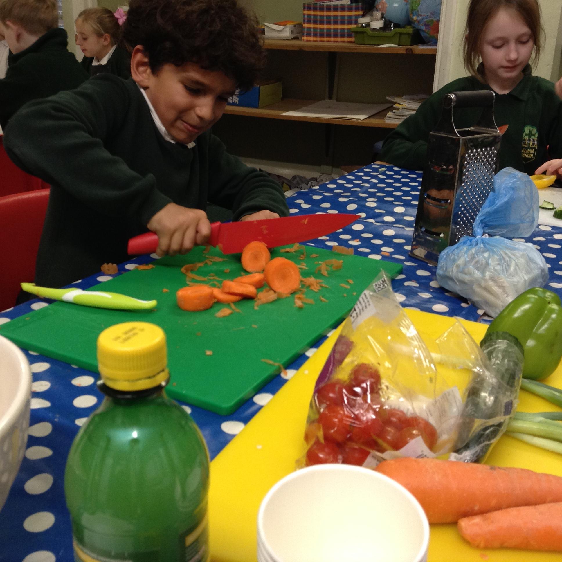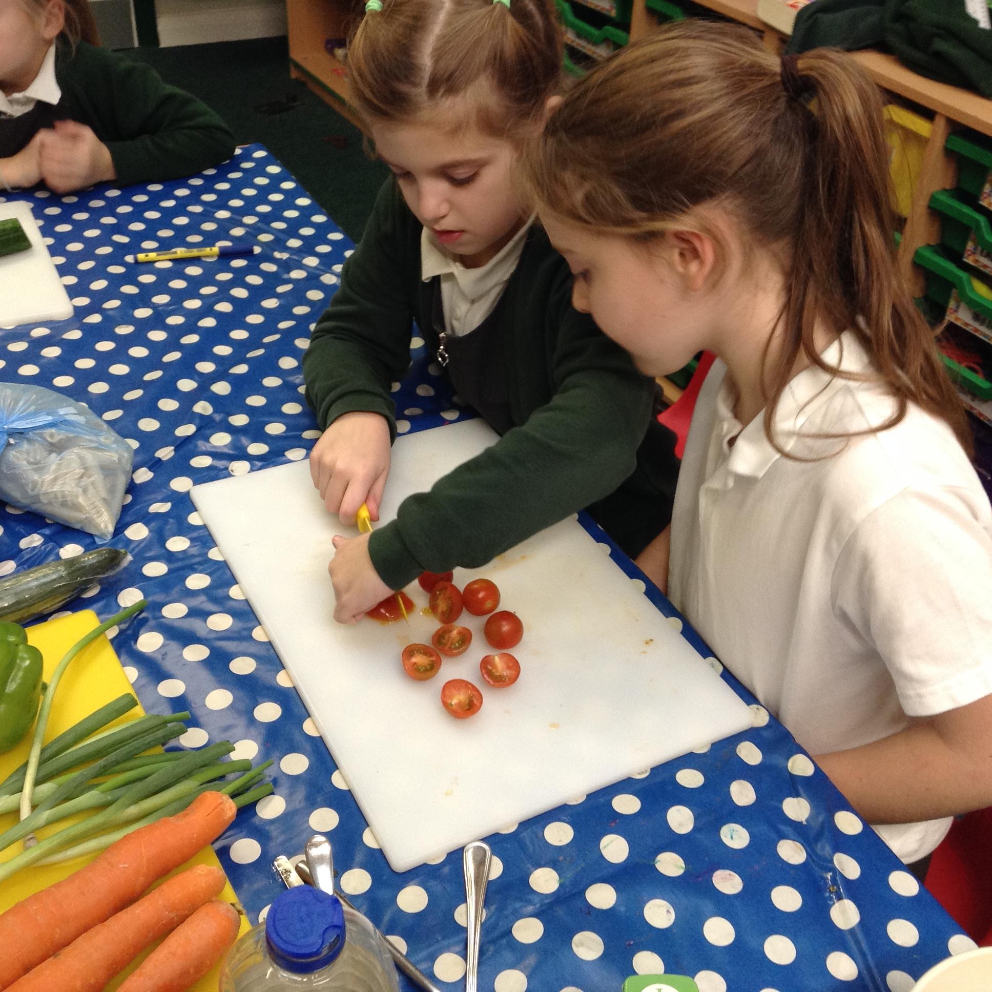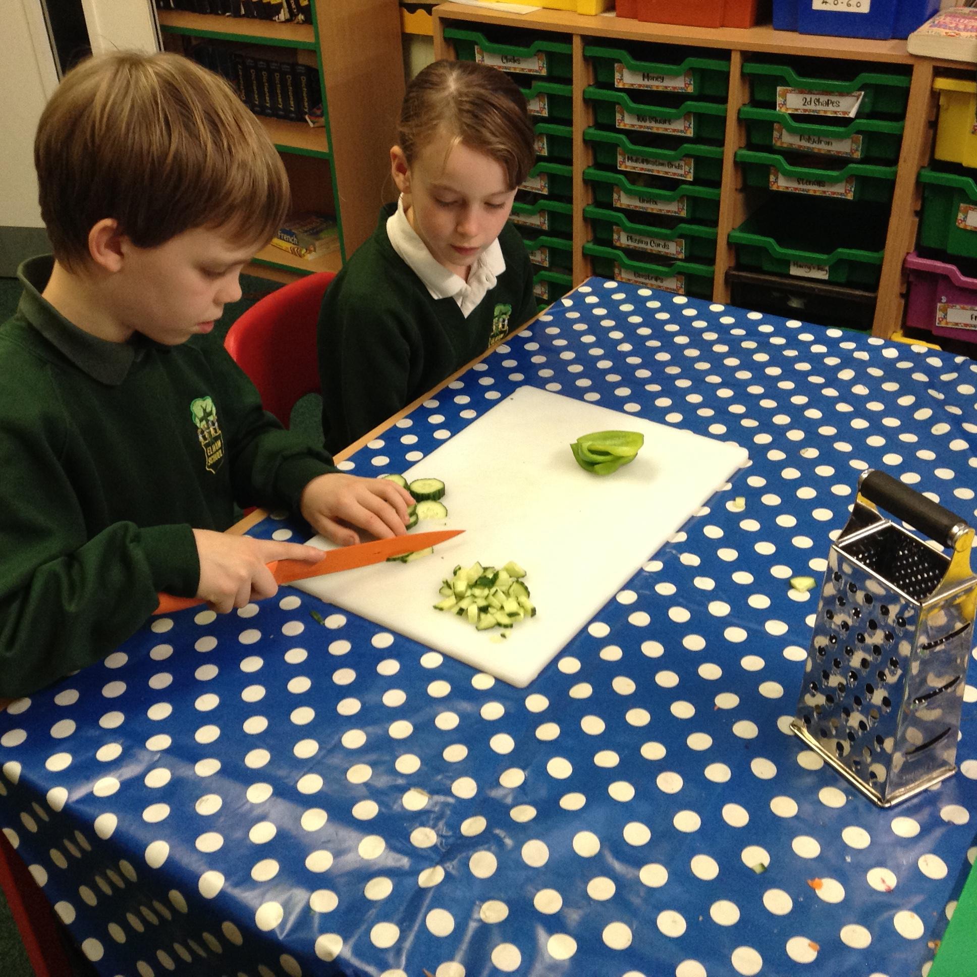 After finishing our final assessment this morning we spent the afternoon completing this terms DT topic which involved us all making a pasta salad. Children put their chopping and dicing skills to the test and in groups they made a pasta salad, which most of them were brave enough to try!