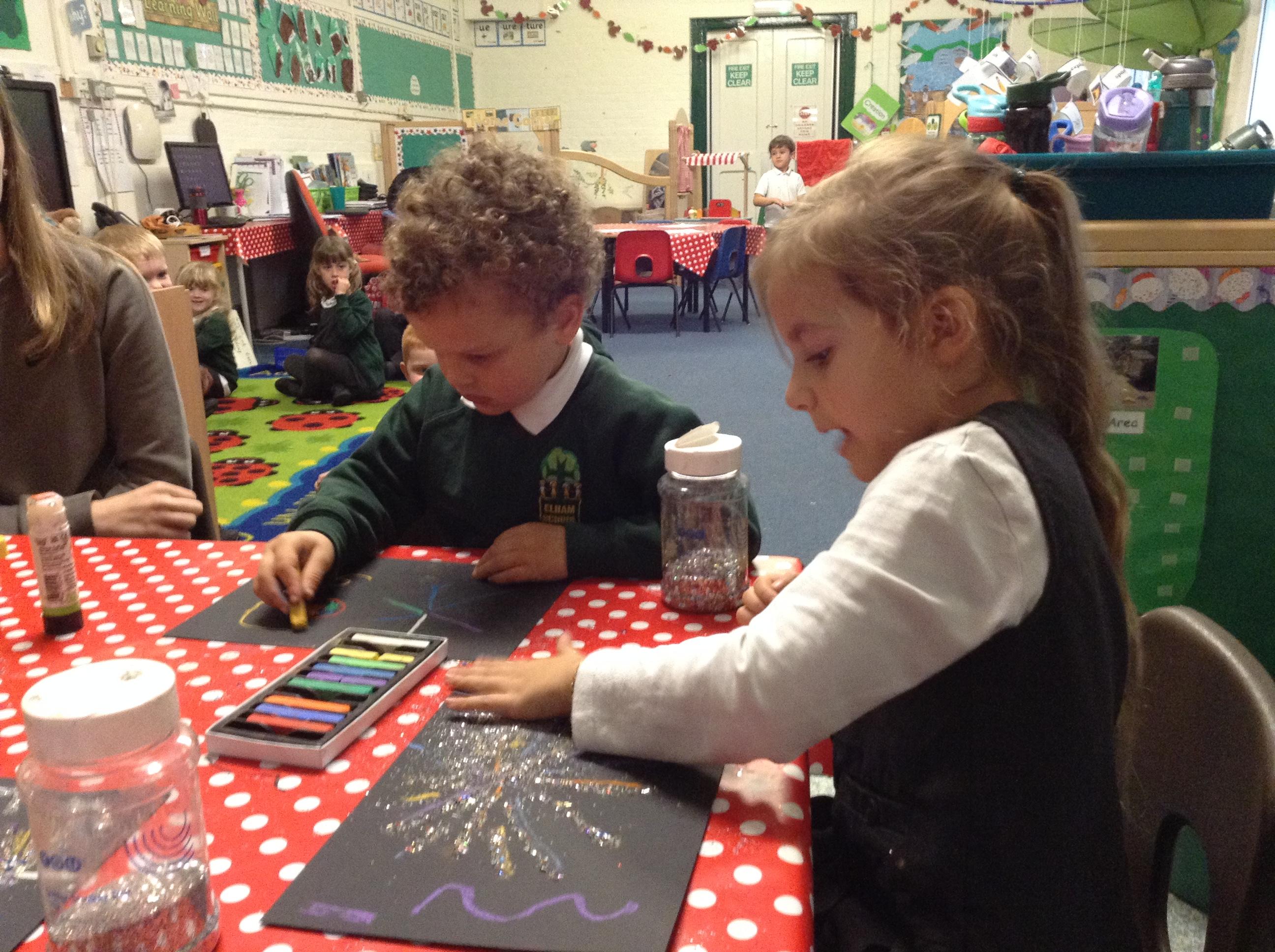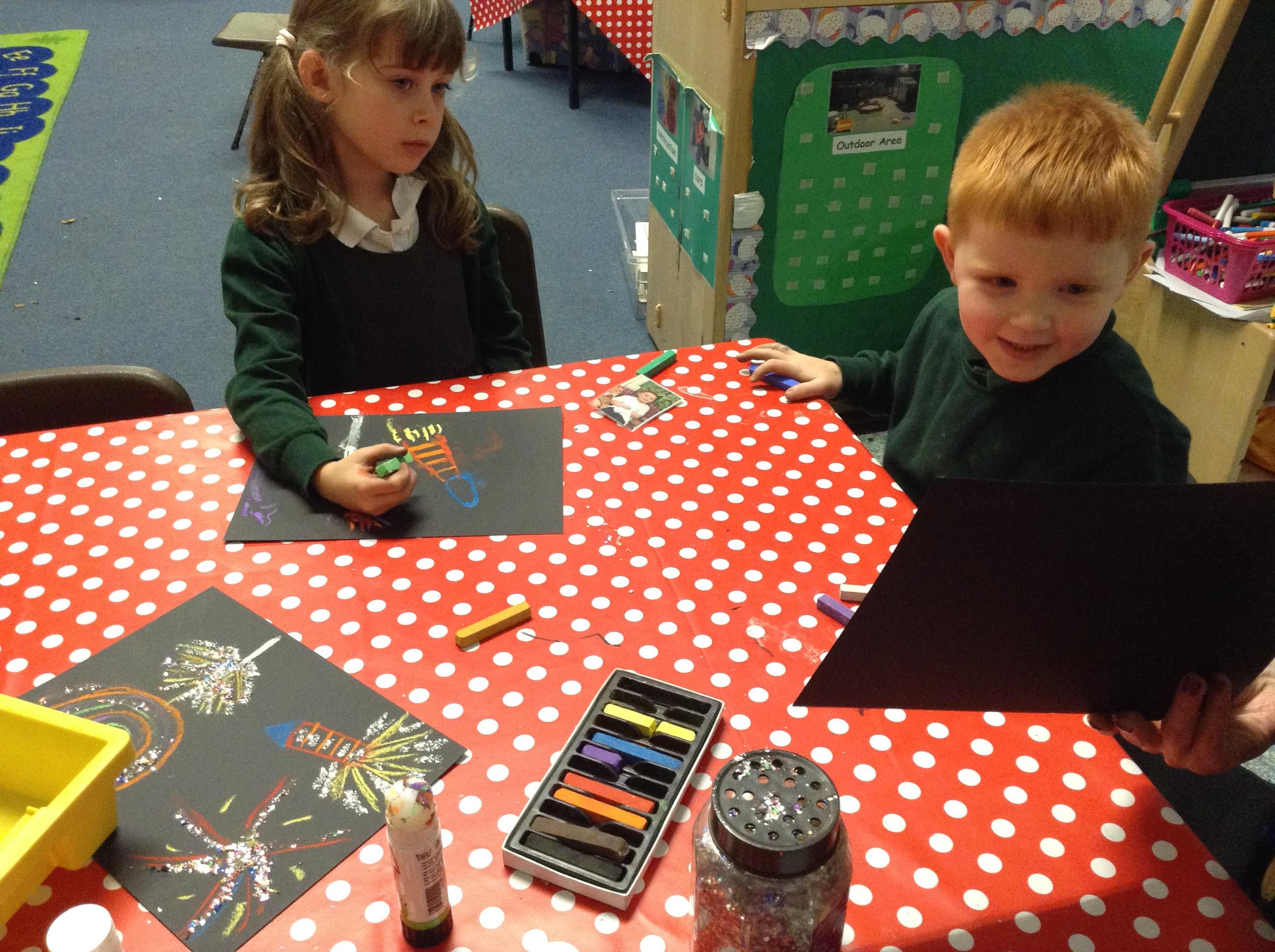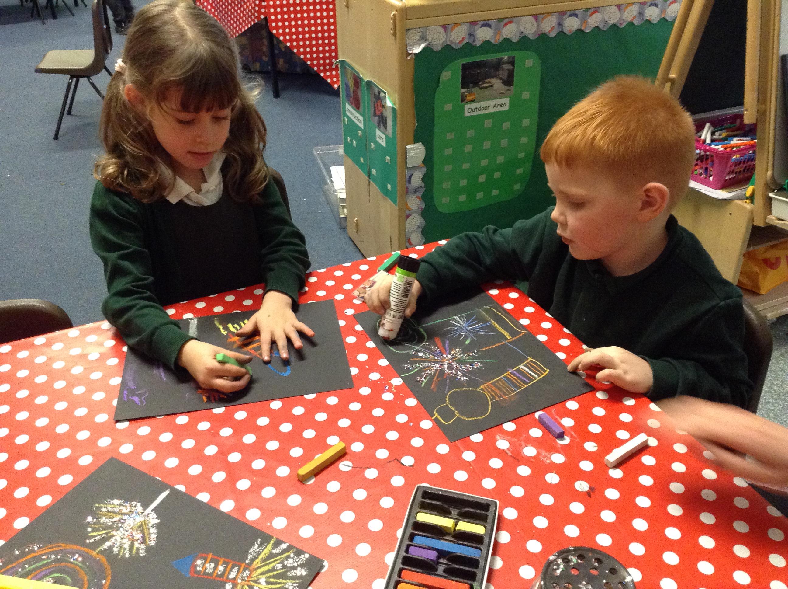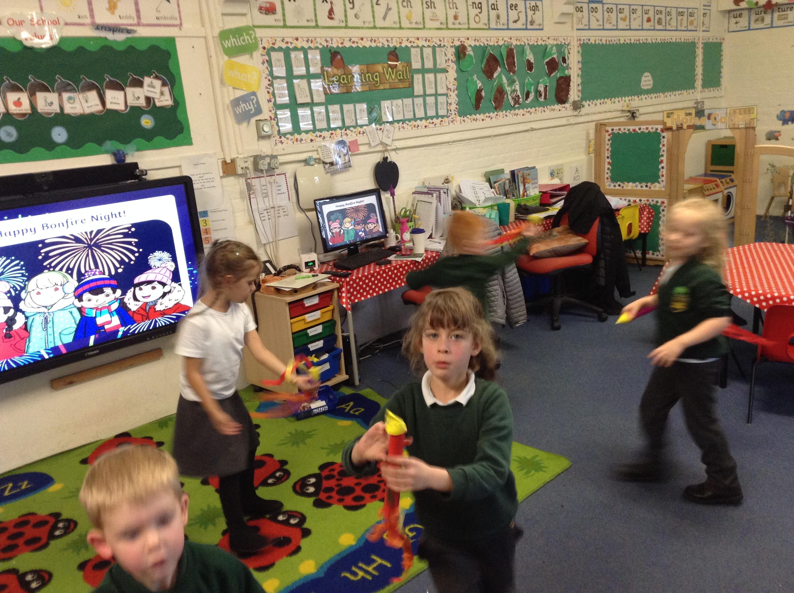 This week our learning has been based around firework night. We have written some words for the noises that fireworks make using the sounds we have learnt such as 'pop'