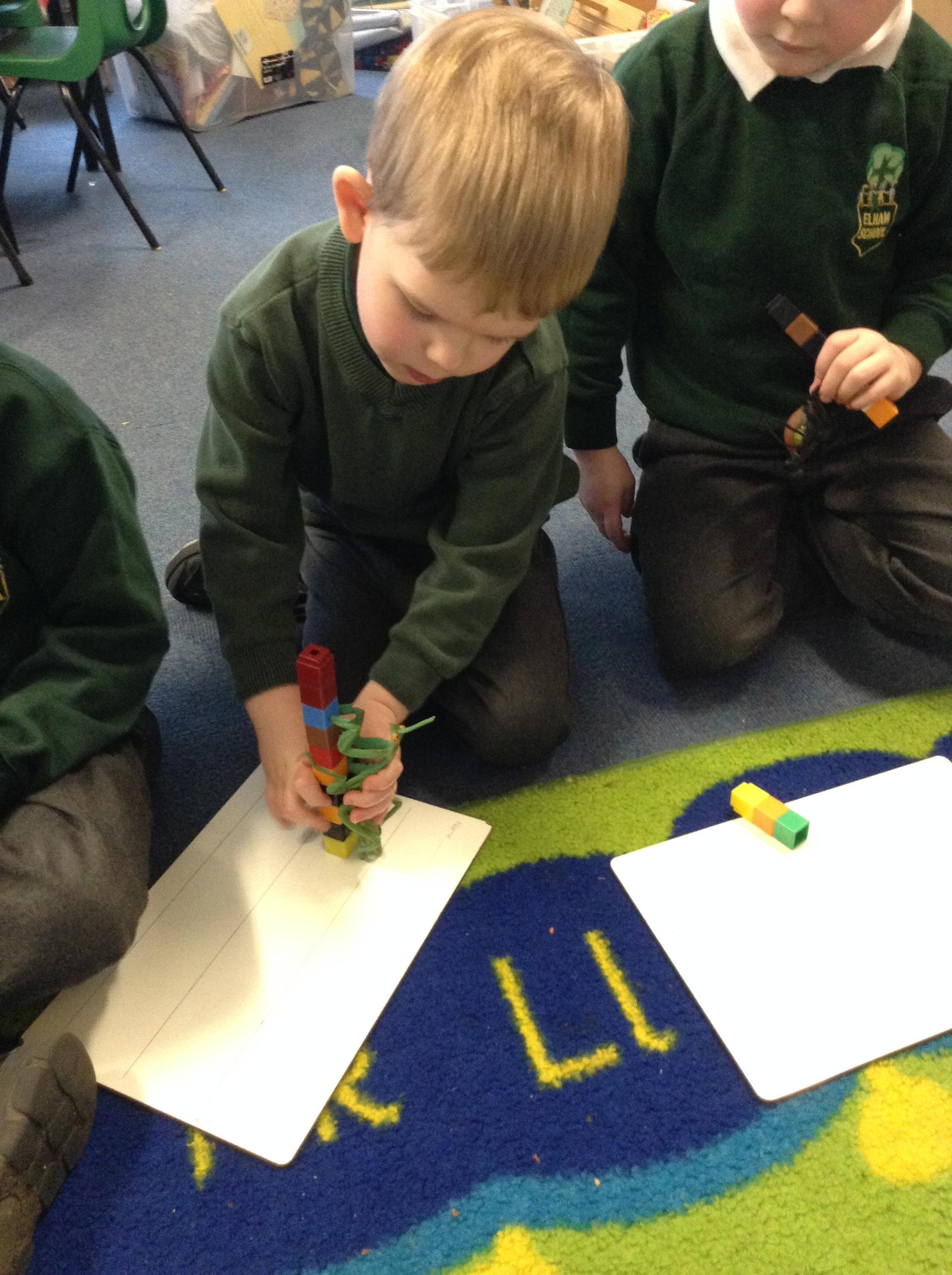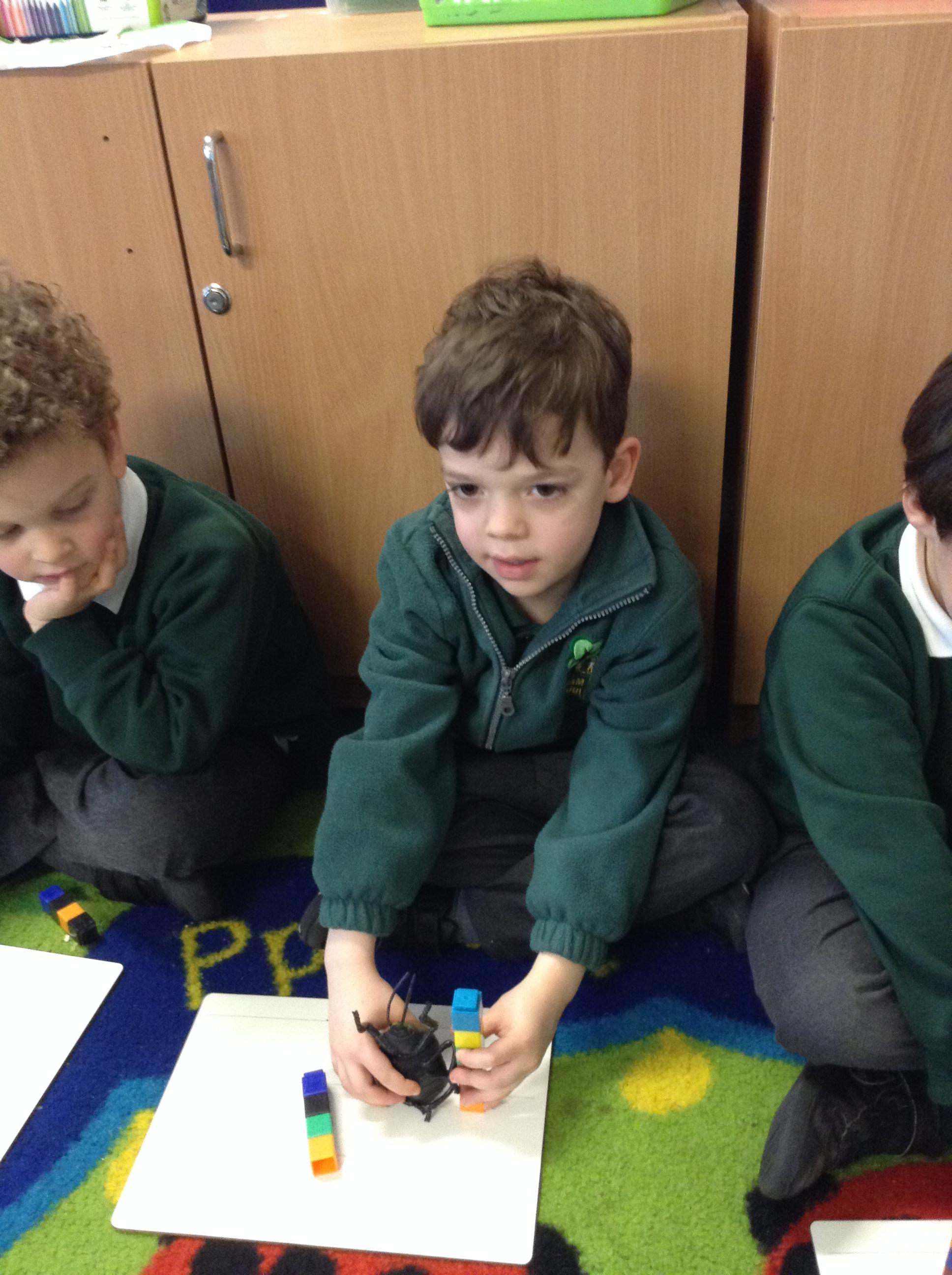 We have used our number skills to measure our class minibeasts and have written words to describe them.