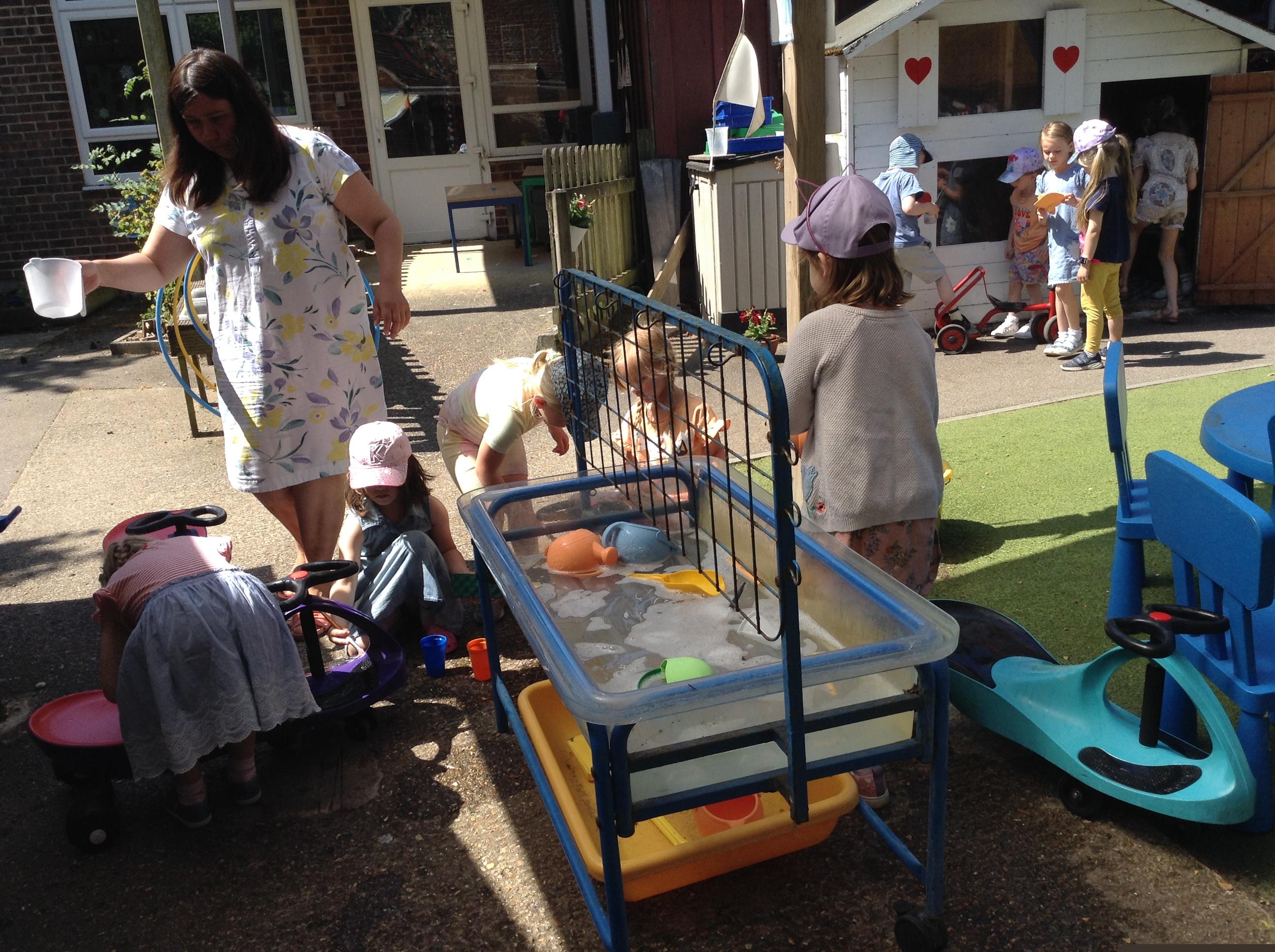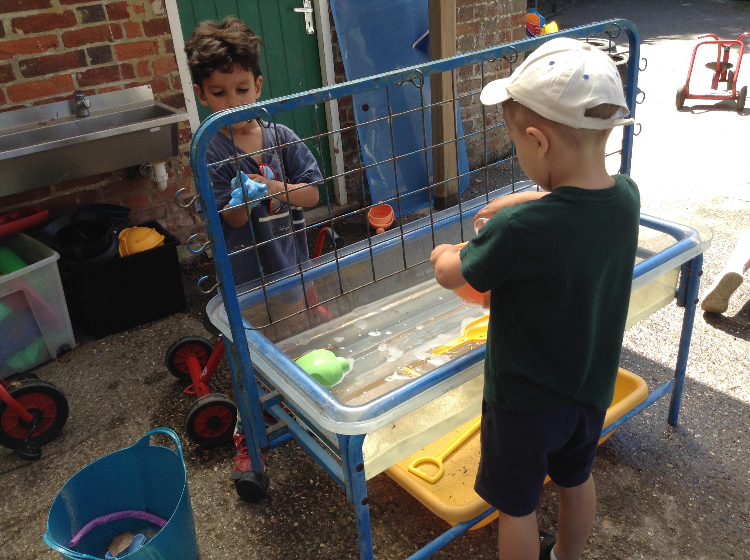 Its lovely getting outside now. The children are having lots of fun playing with the water. They washed all of the cars today and were very industrious.