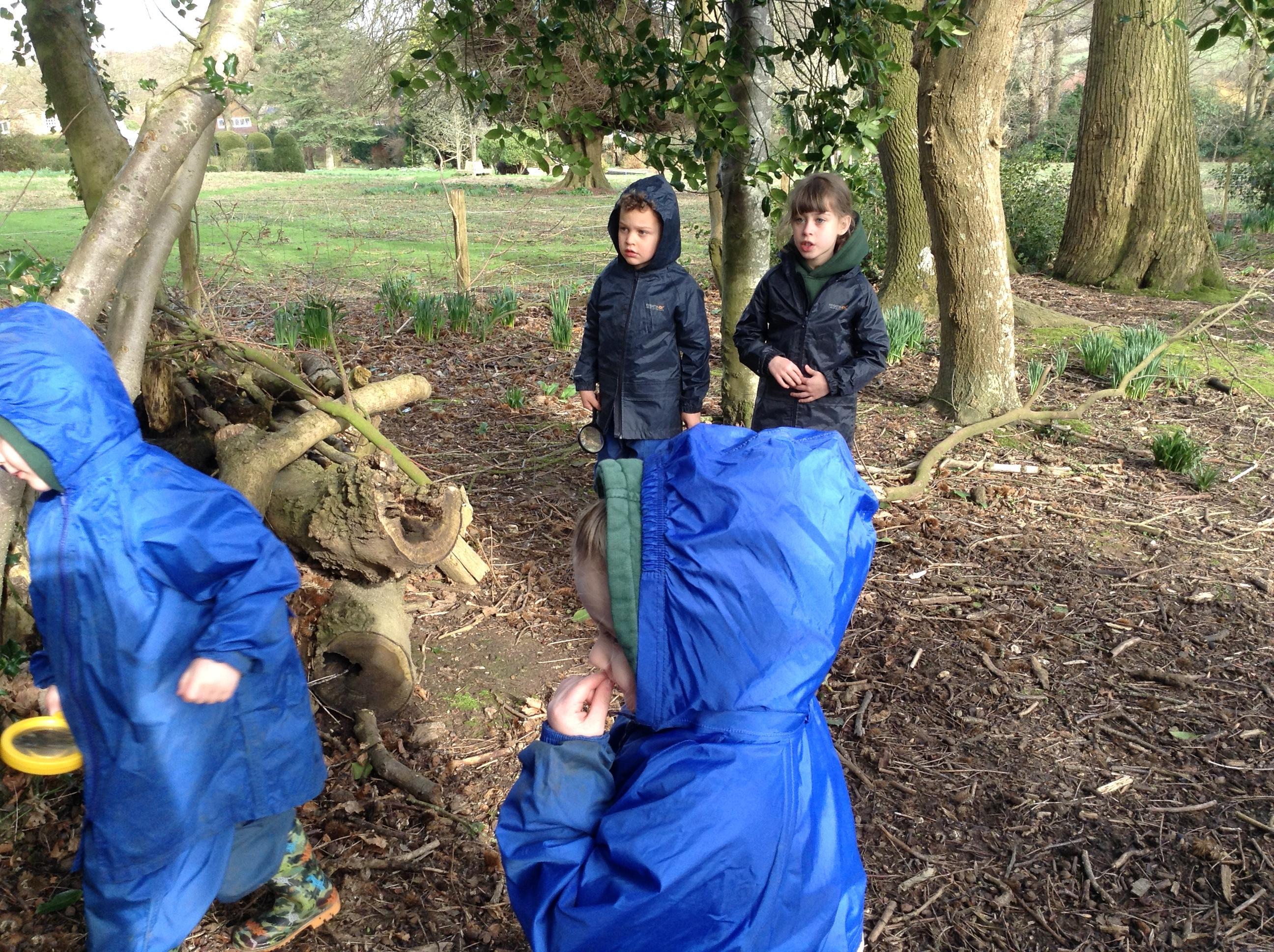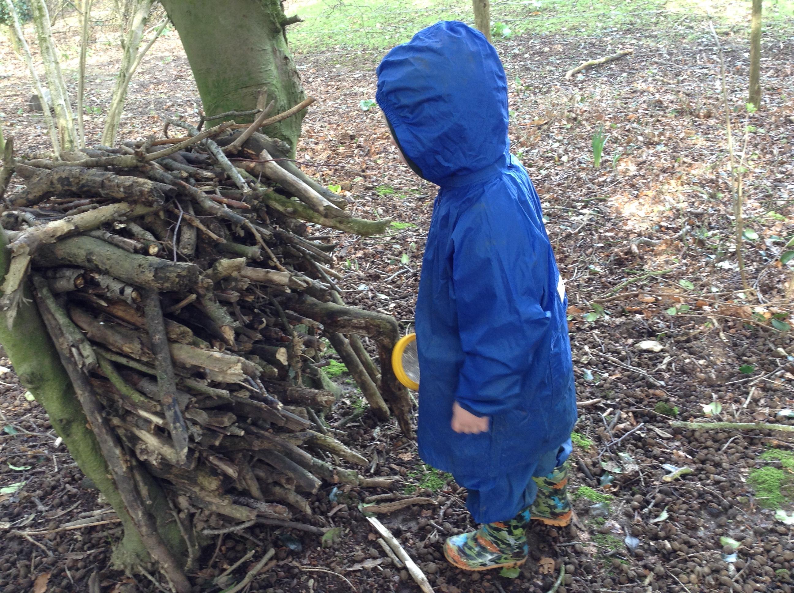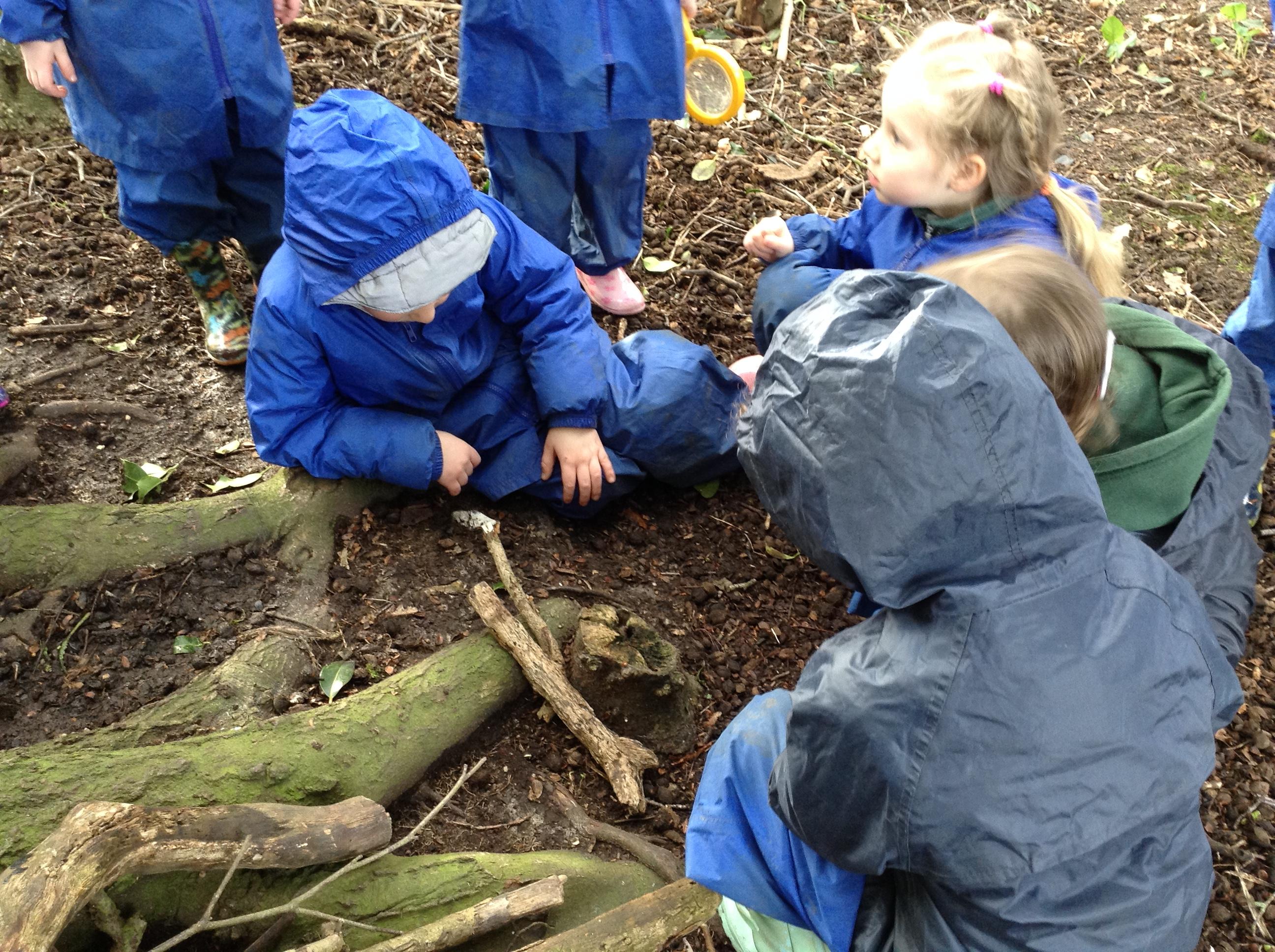 Forest school was fun, we looked for mini beasts. We found a few but I think most chose to stay in their homes.