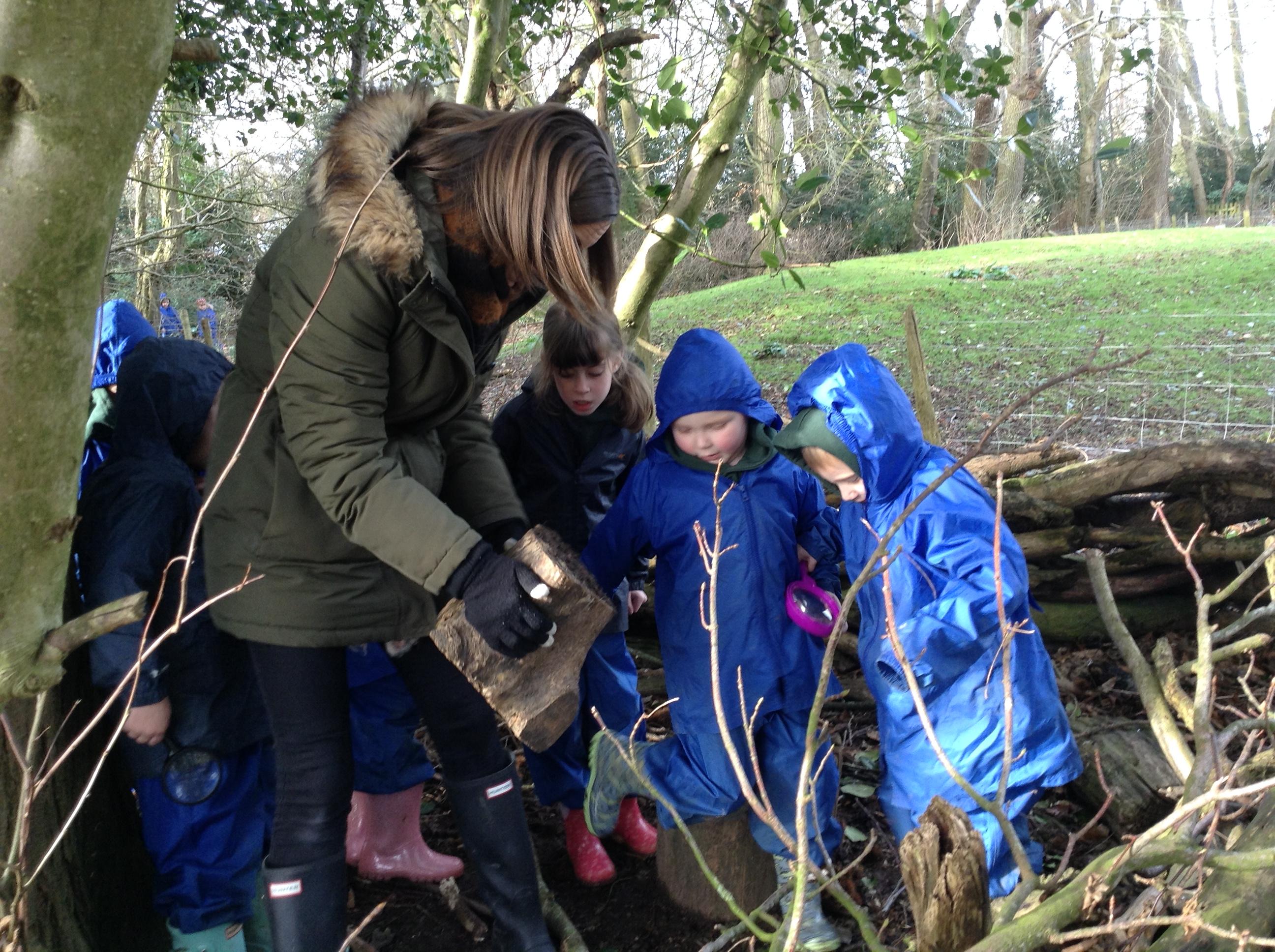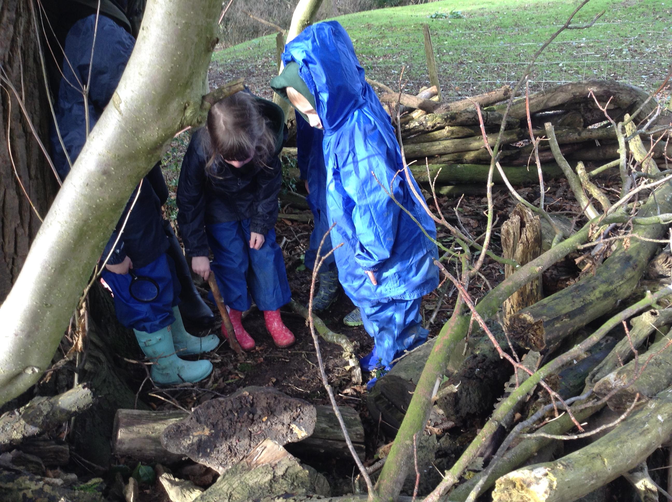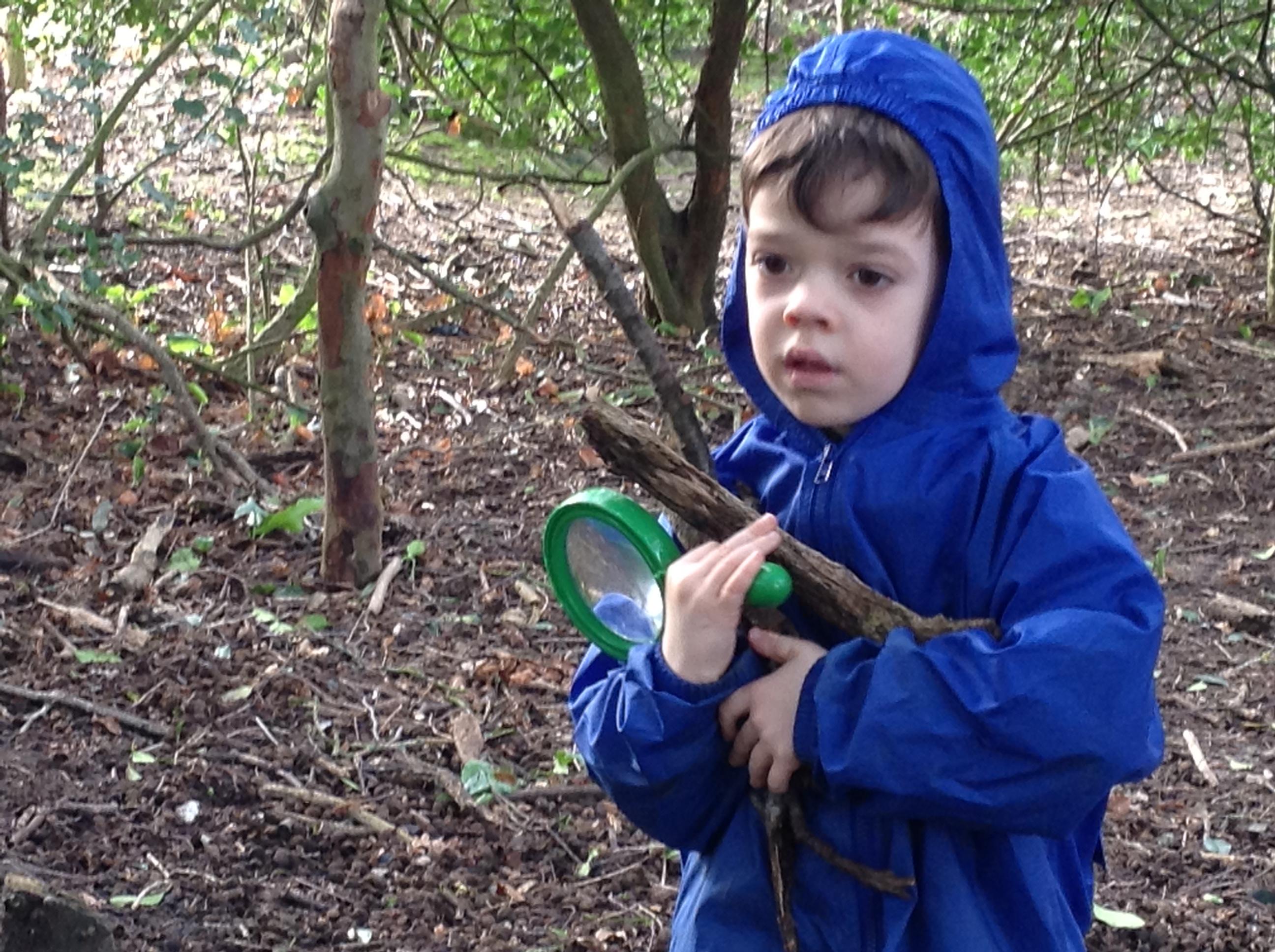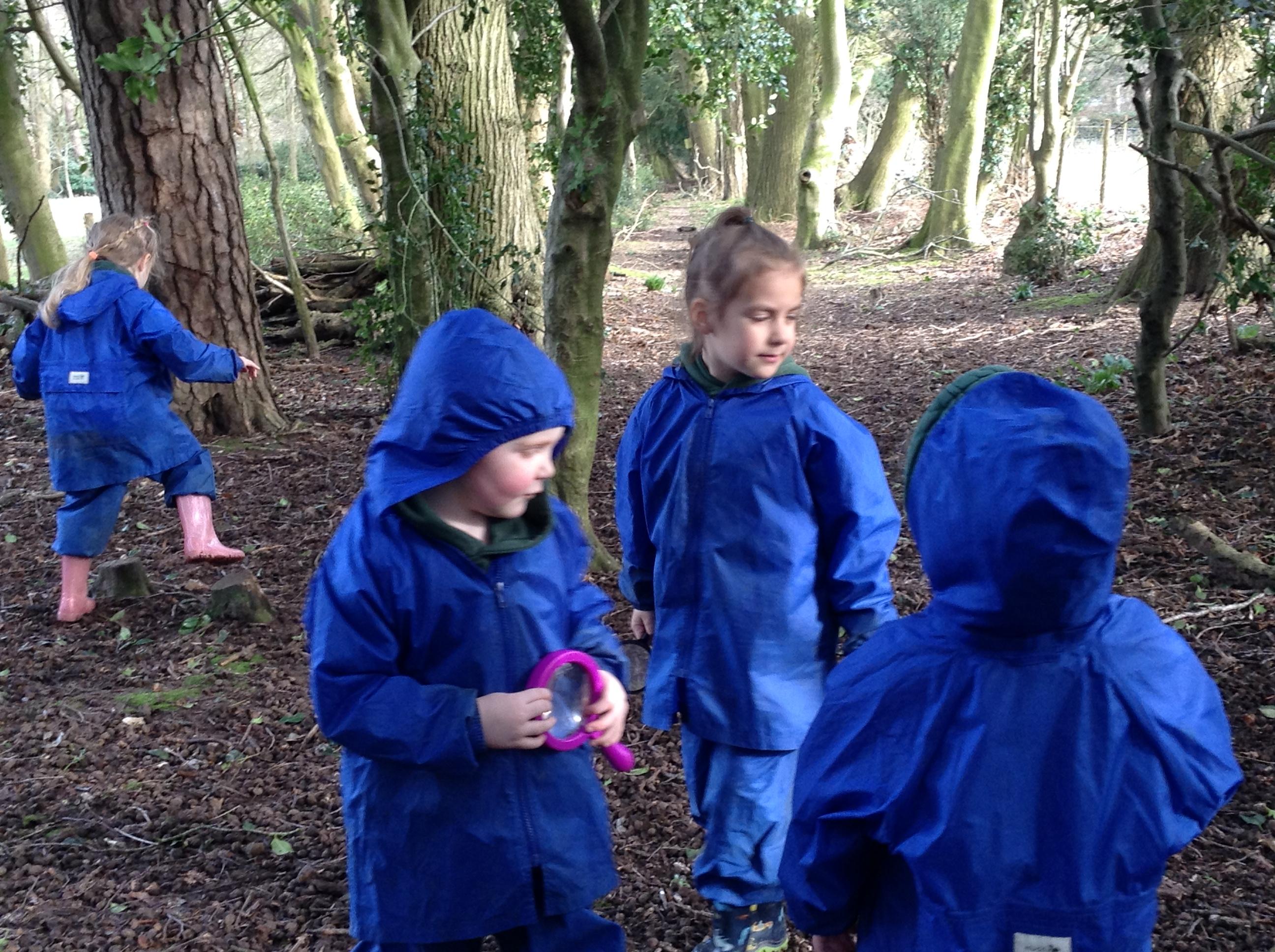 Forest school was fun, we looked for mini beasts. We found a few but I think most chose to stay in their homes.