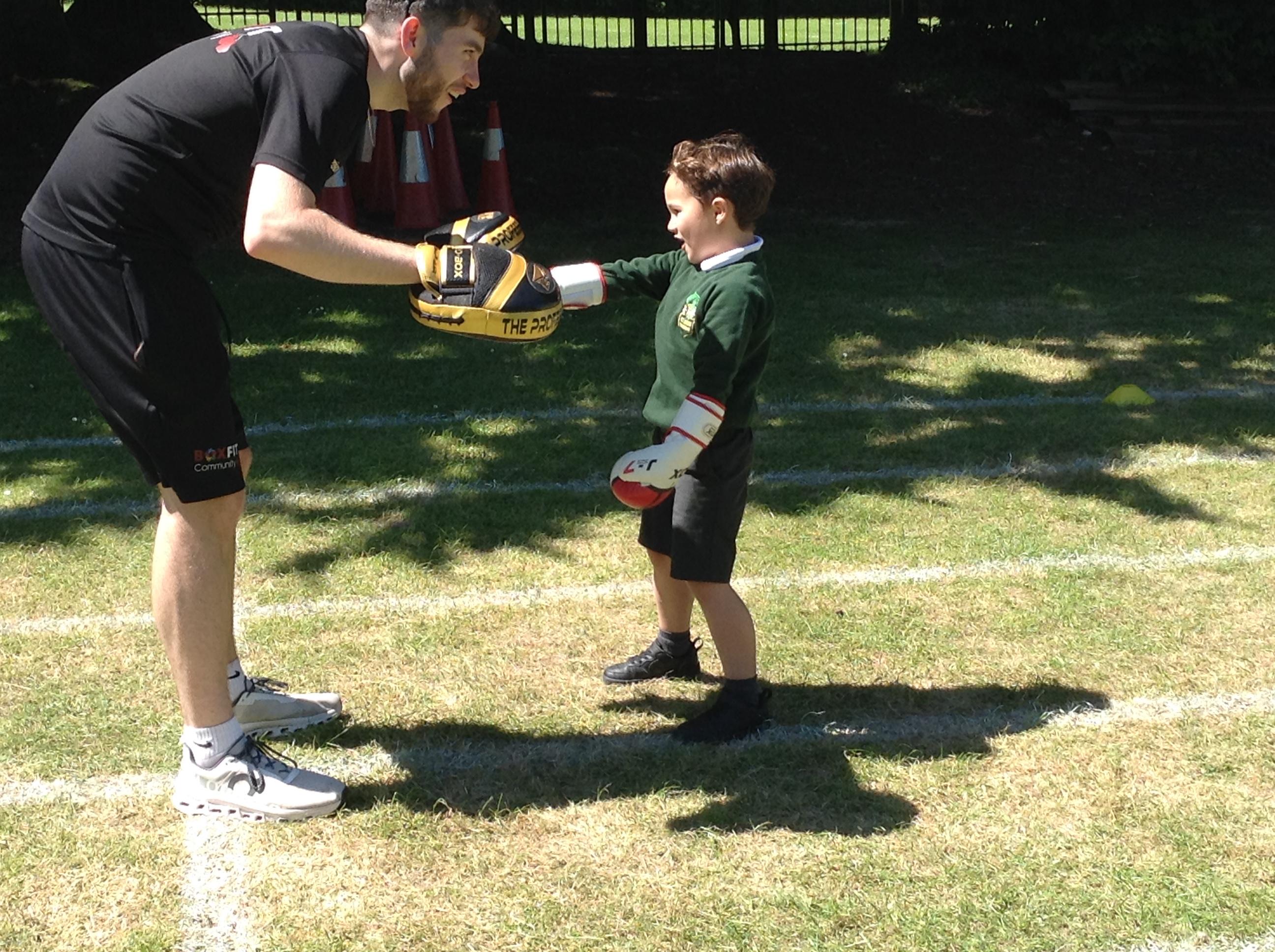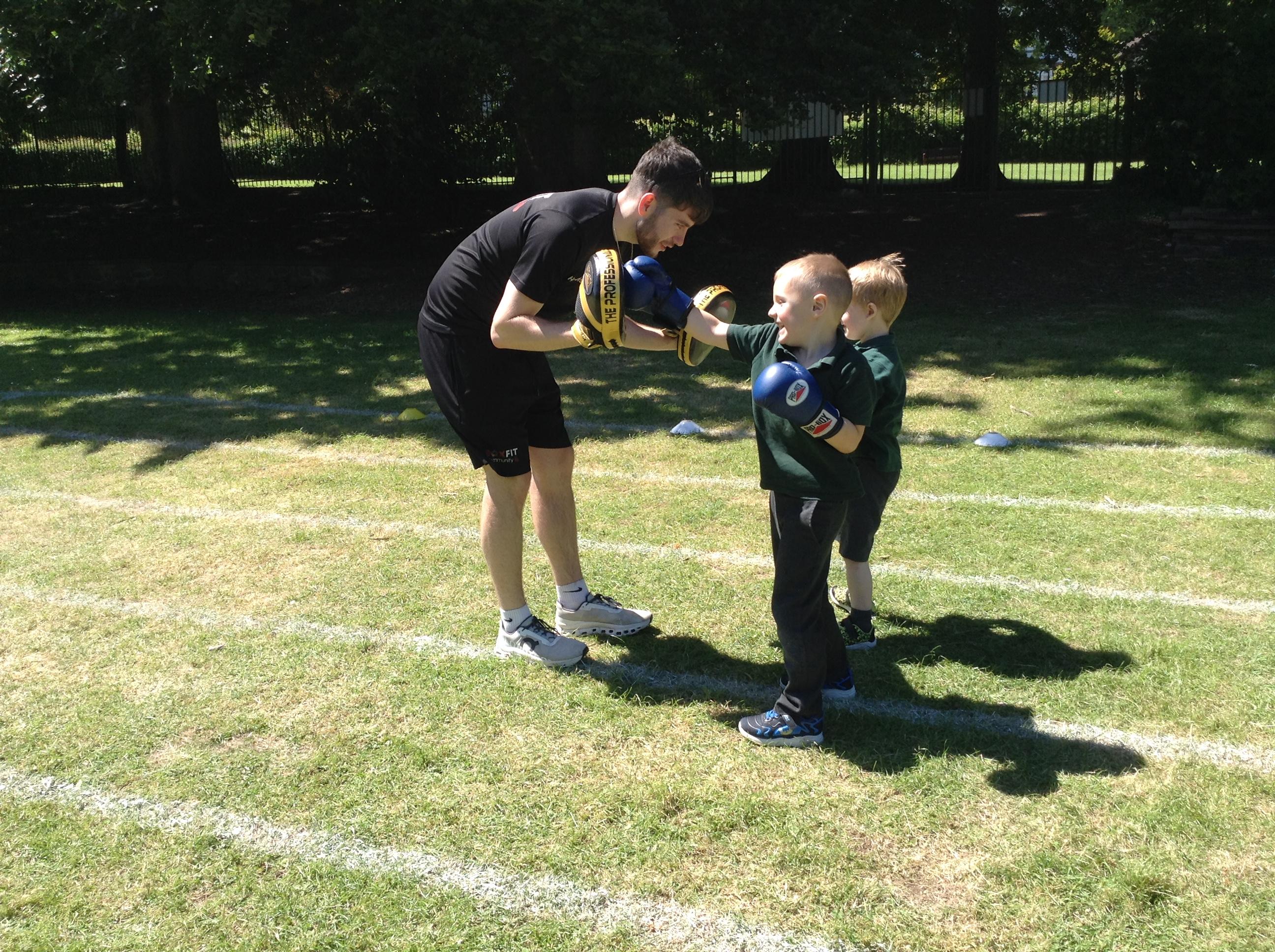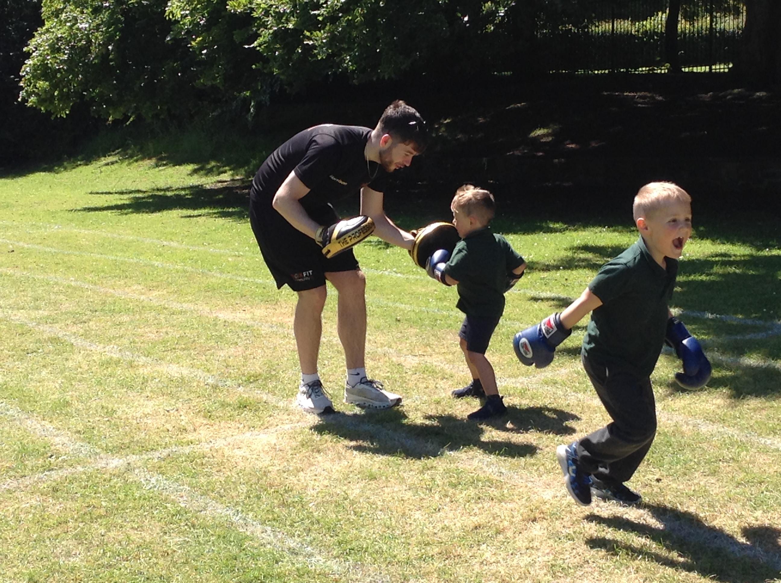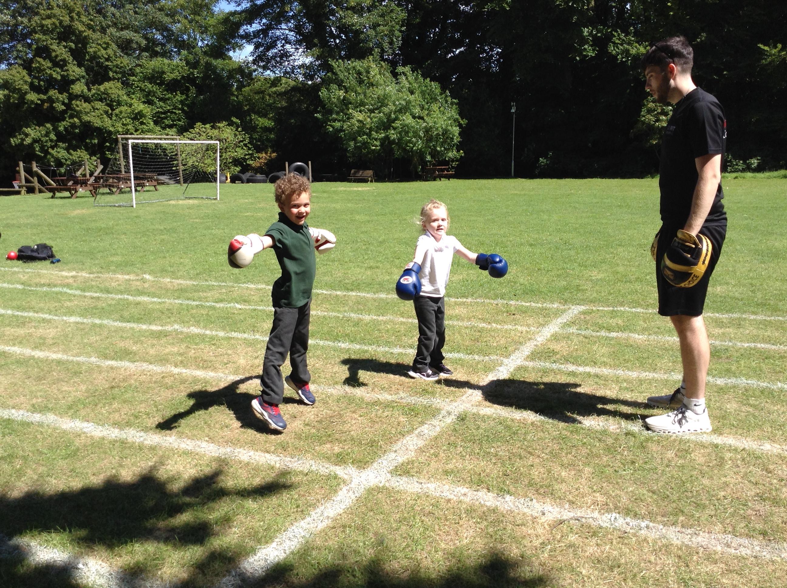 What a great start to a very sporty week. We had a session of Boxfit with Harrison. It was great fun and the children worked well following instructions and gaining co ordination participating in the activities. Everyone was keen to have a go and showed how super confident they have become trying something new.