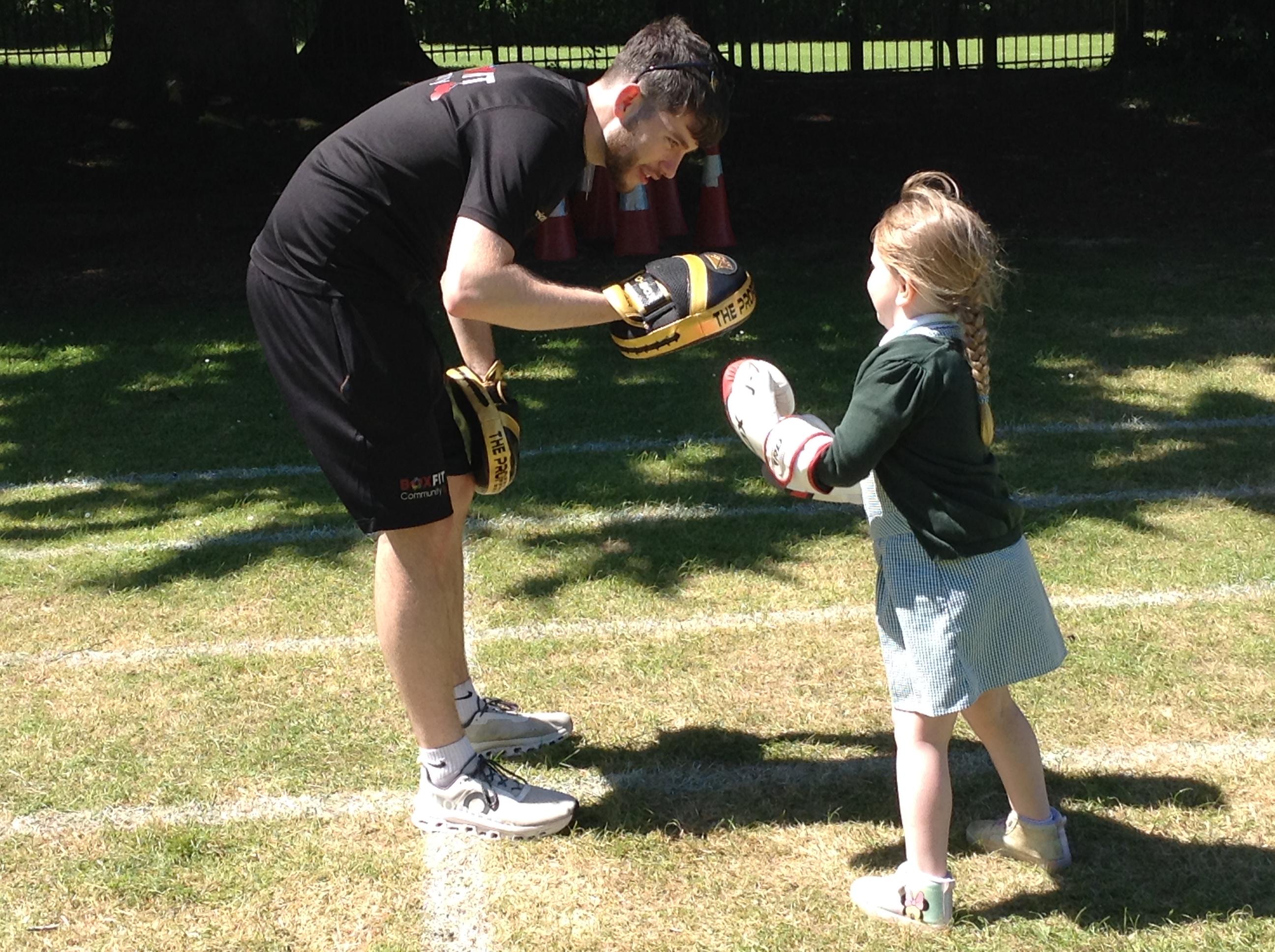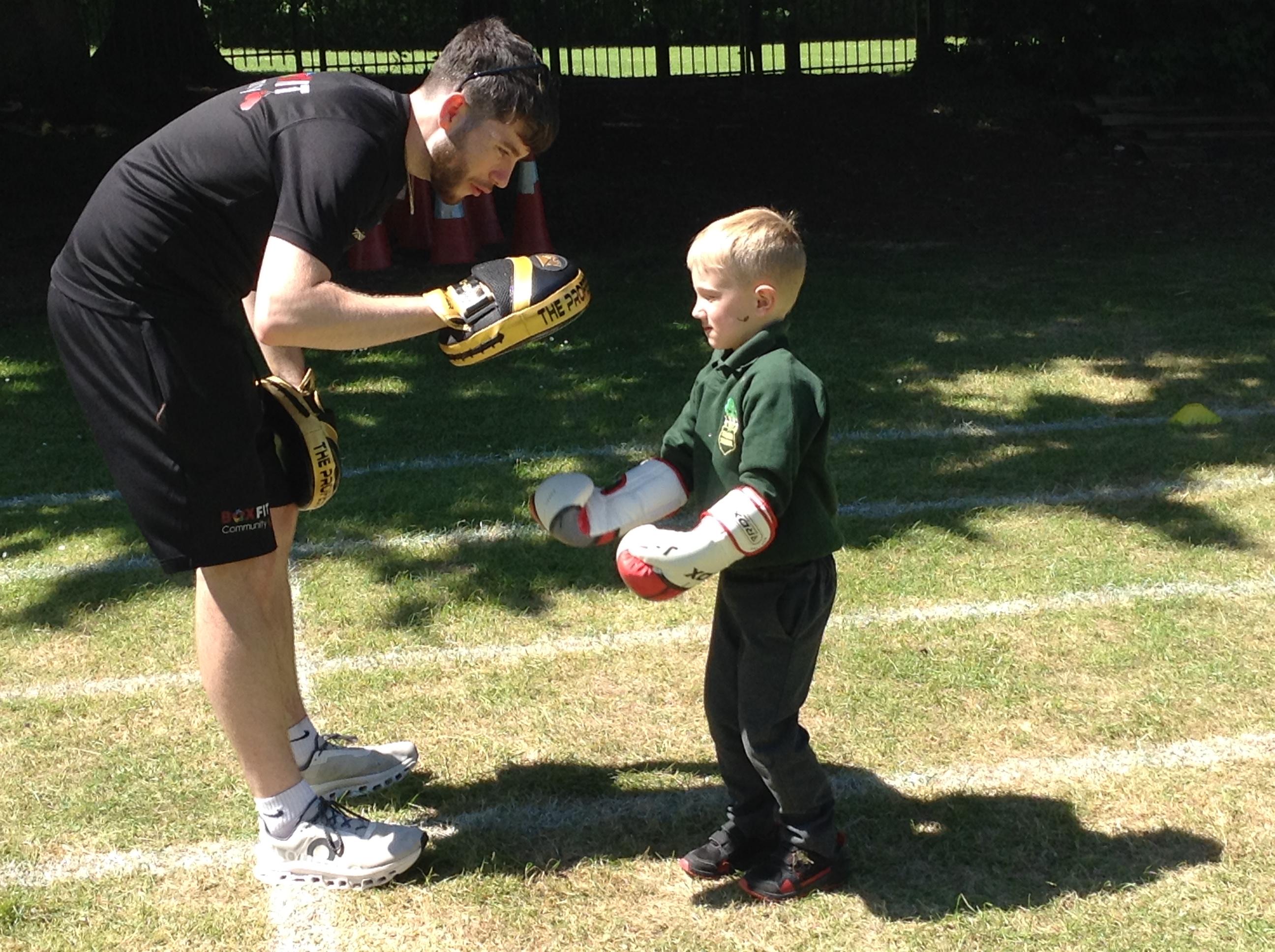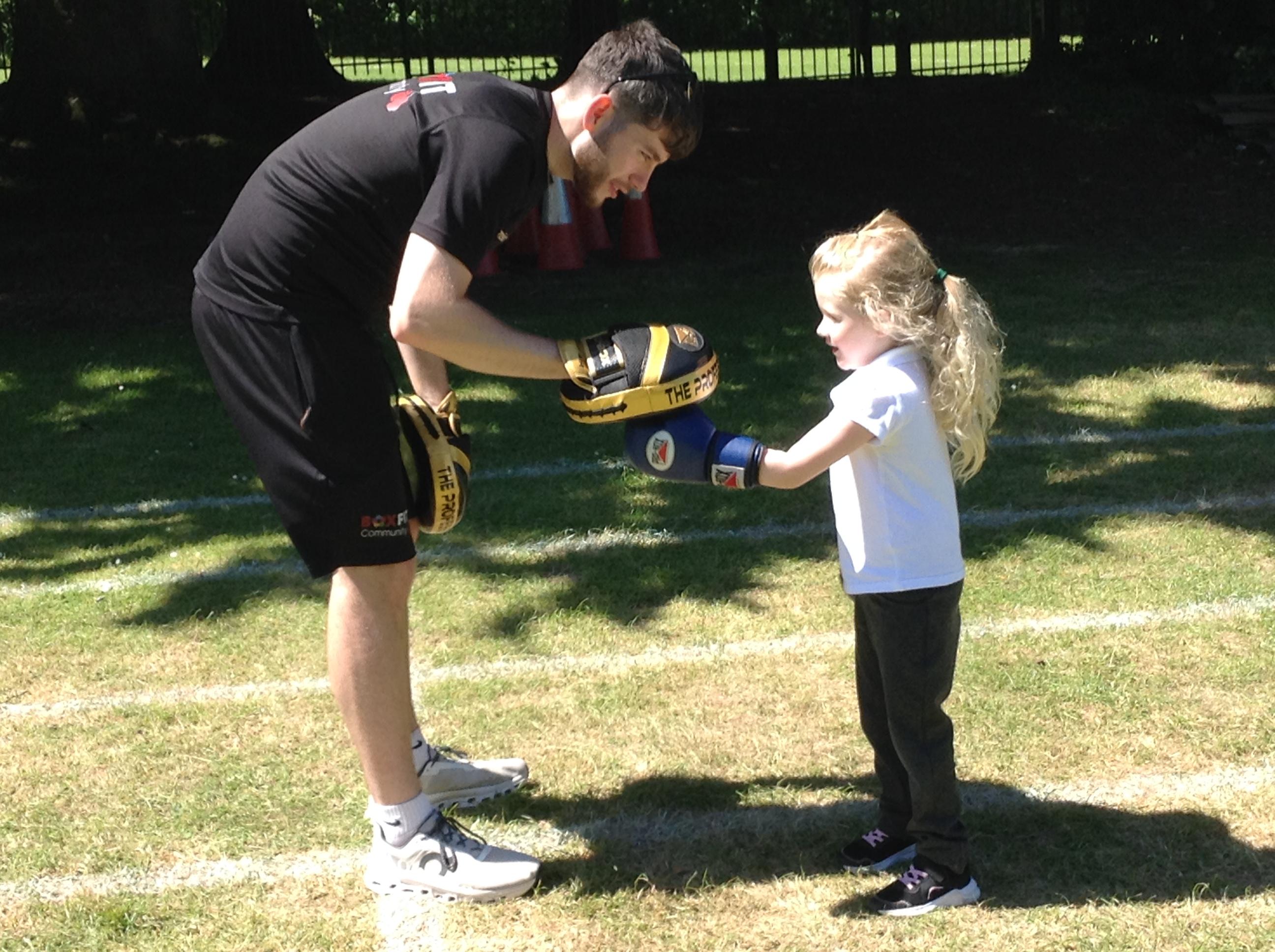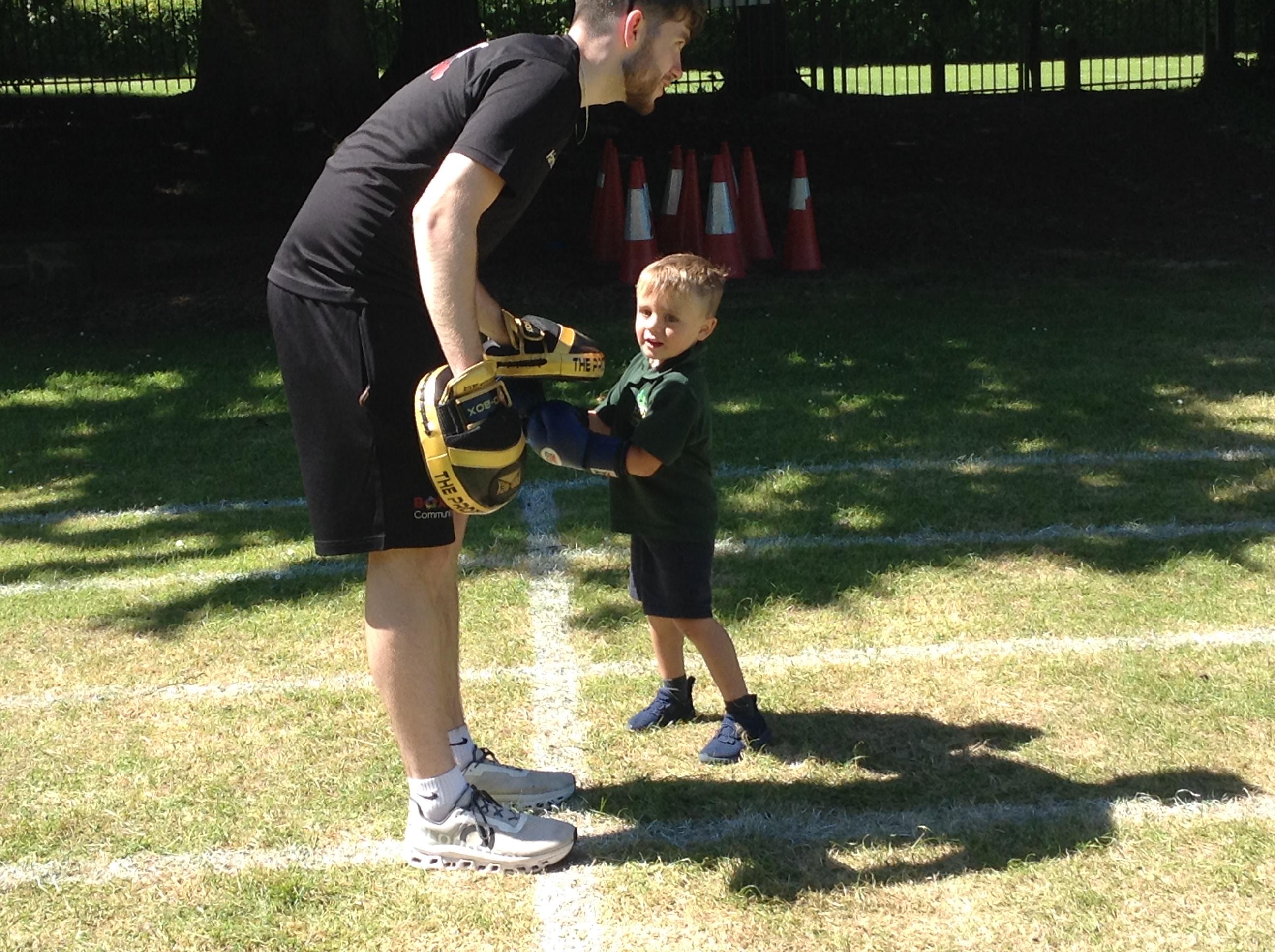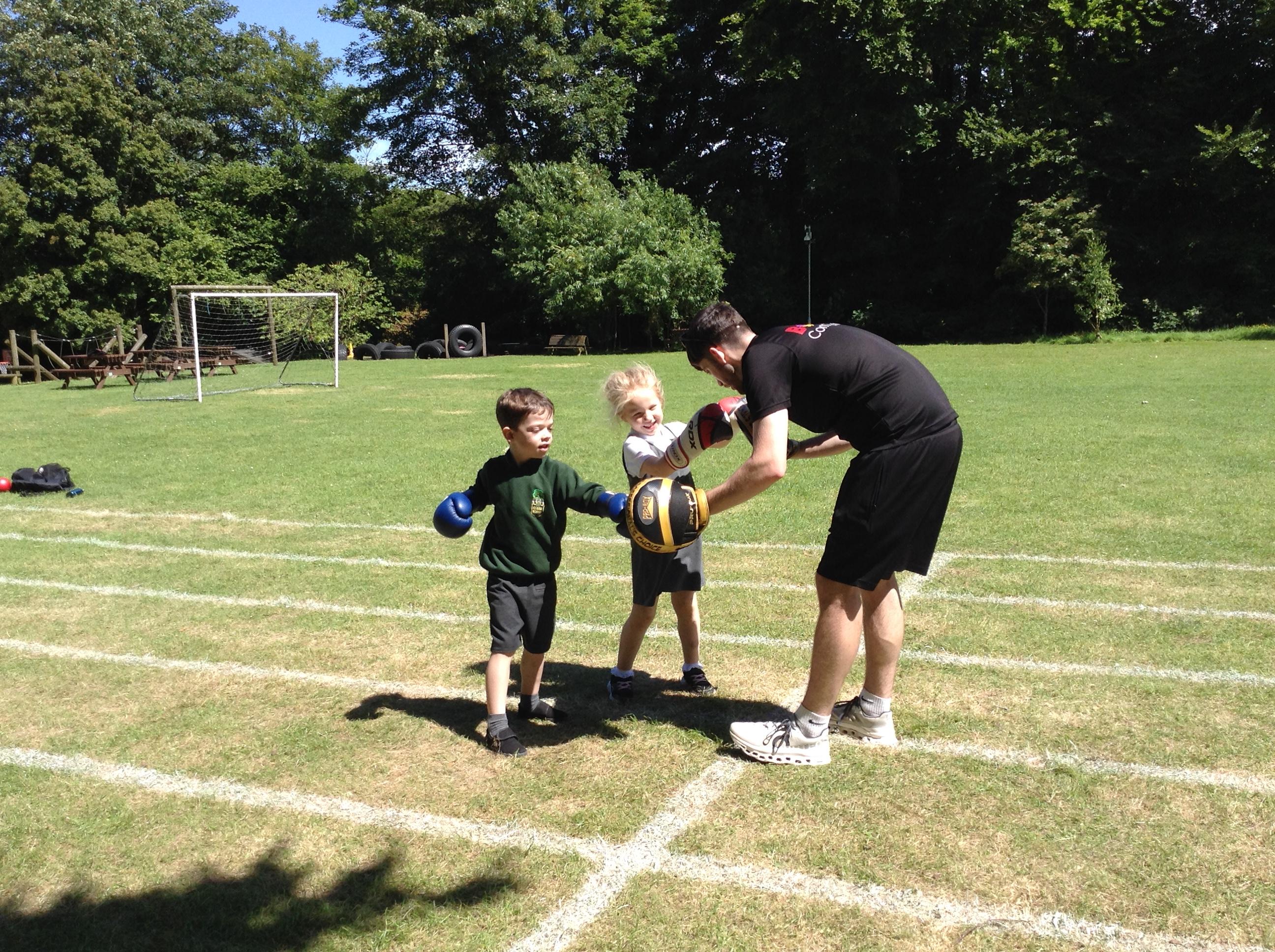 What a great start to a very sporty week. We had a session of Boxfit with Harrison. It was great fun and the children worked well following instructions and gaining co ordination participating in the activities. Everyone was keen to have a go and showed how super confident they have become trying something new.