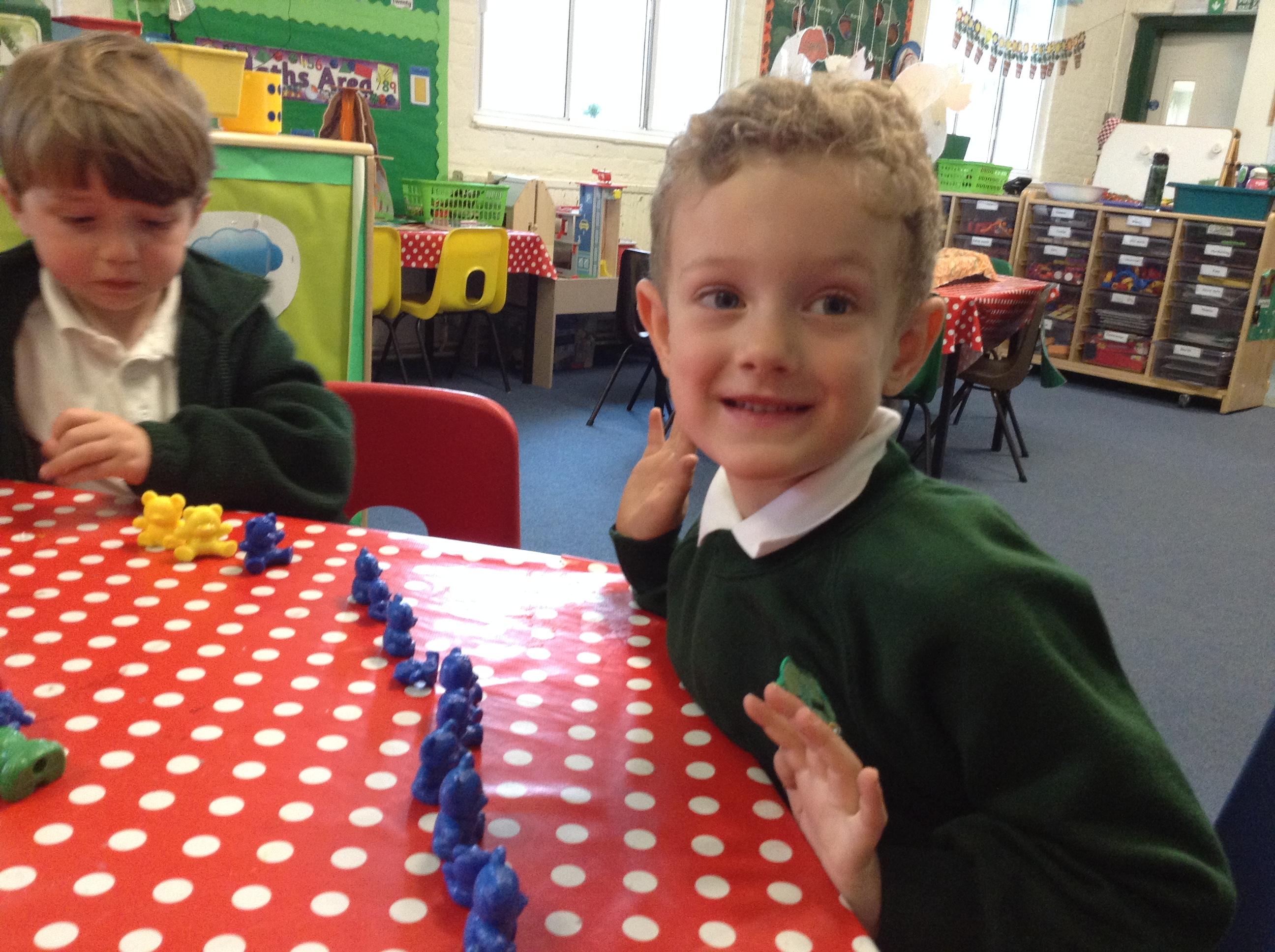 We have started to learn how to write our names and have been counting out and matching numbers to values
