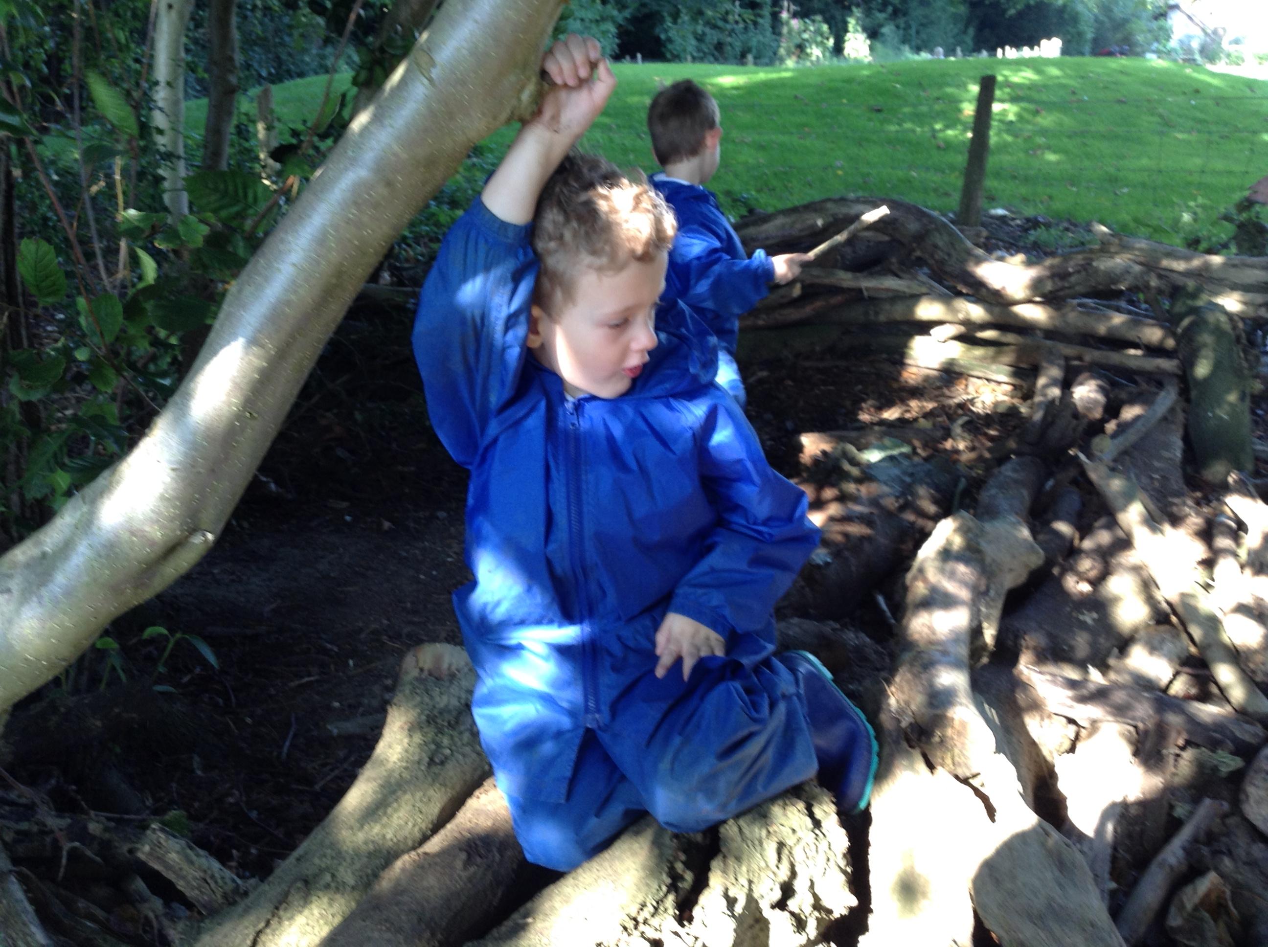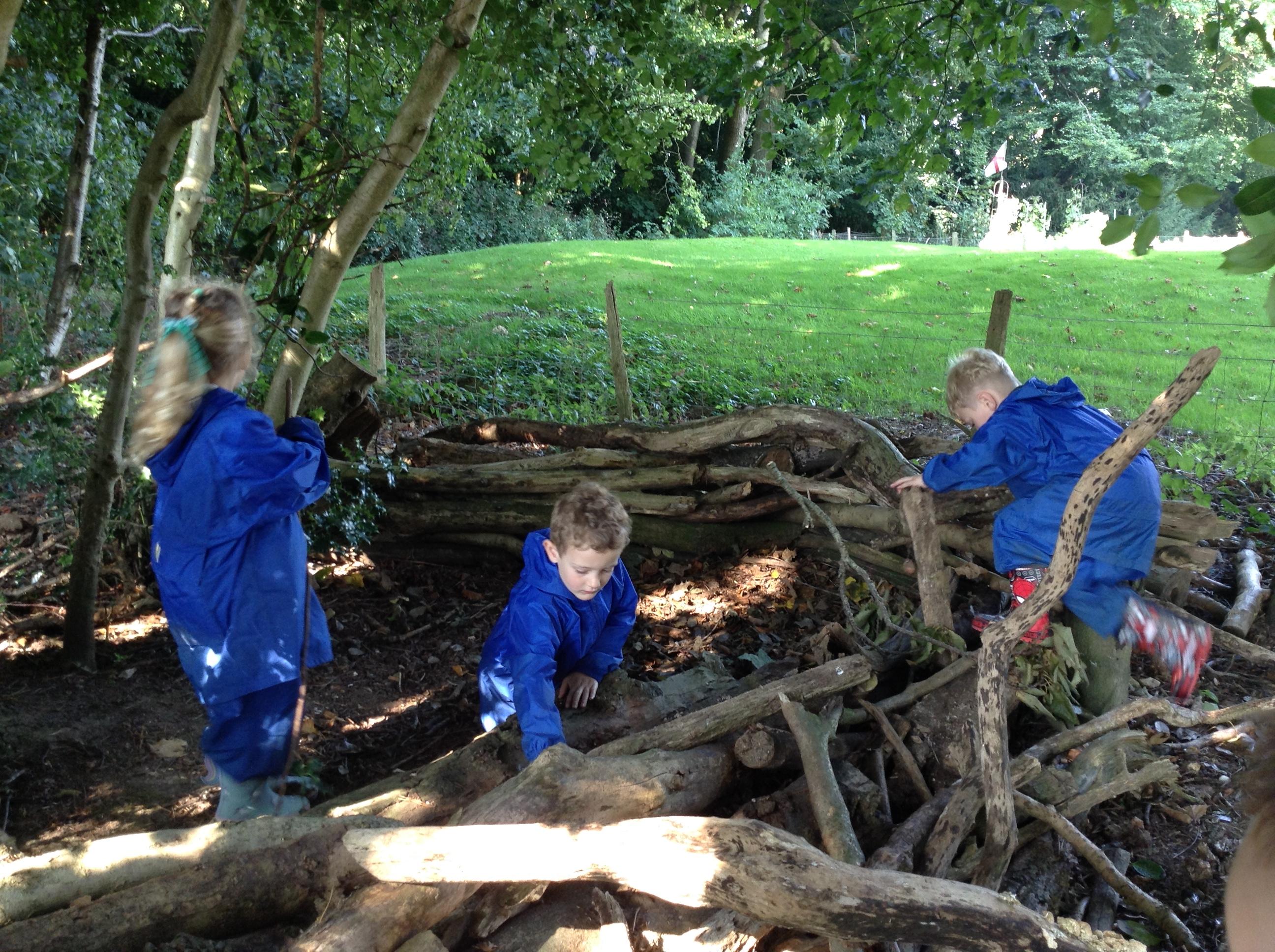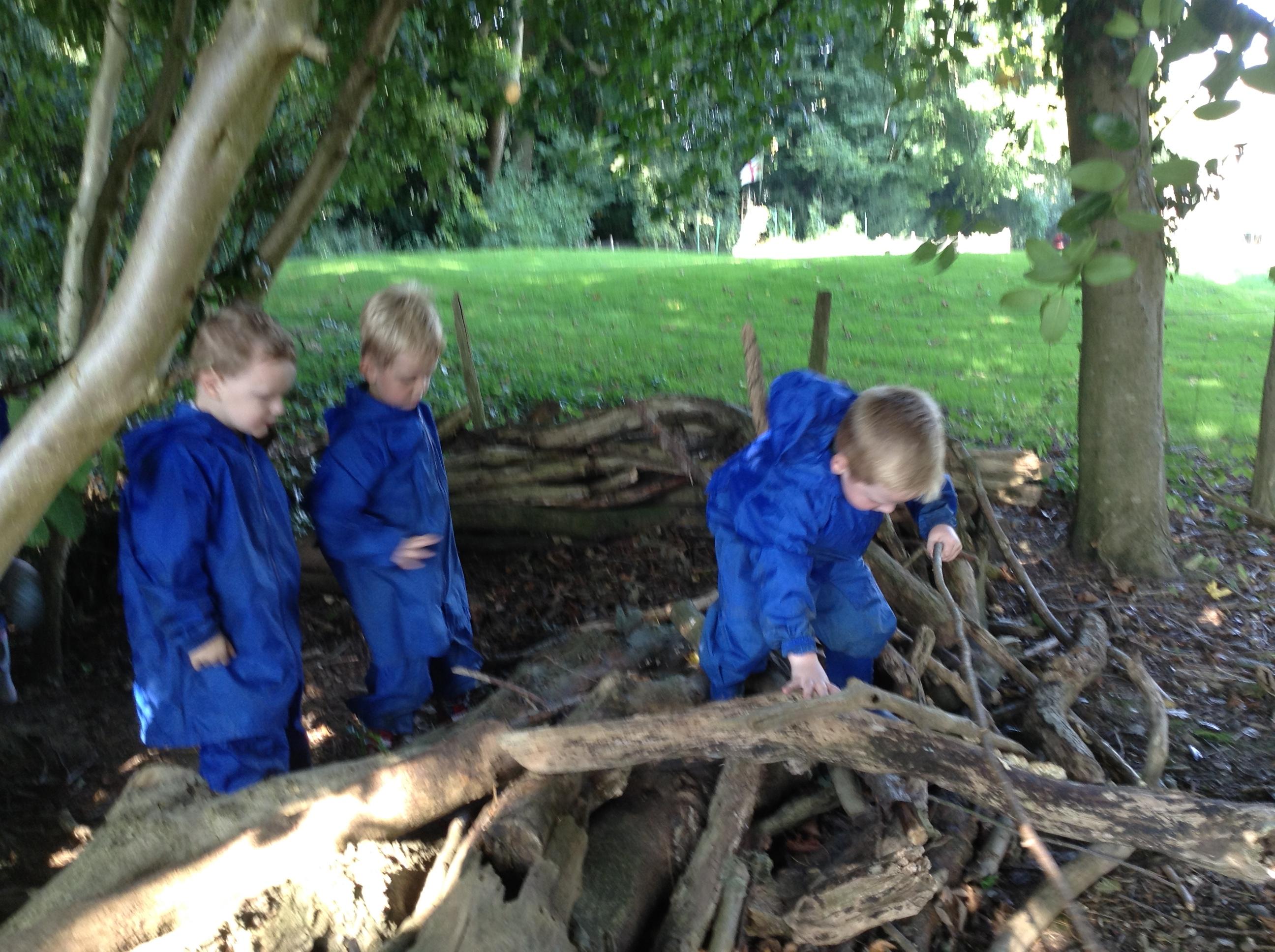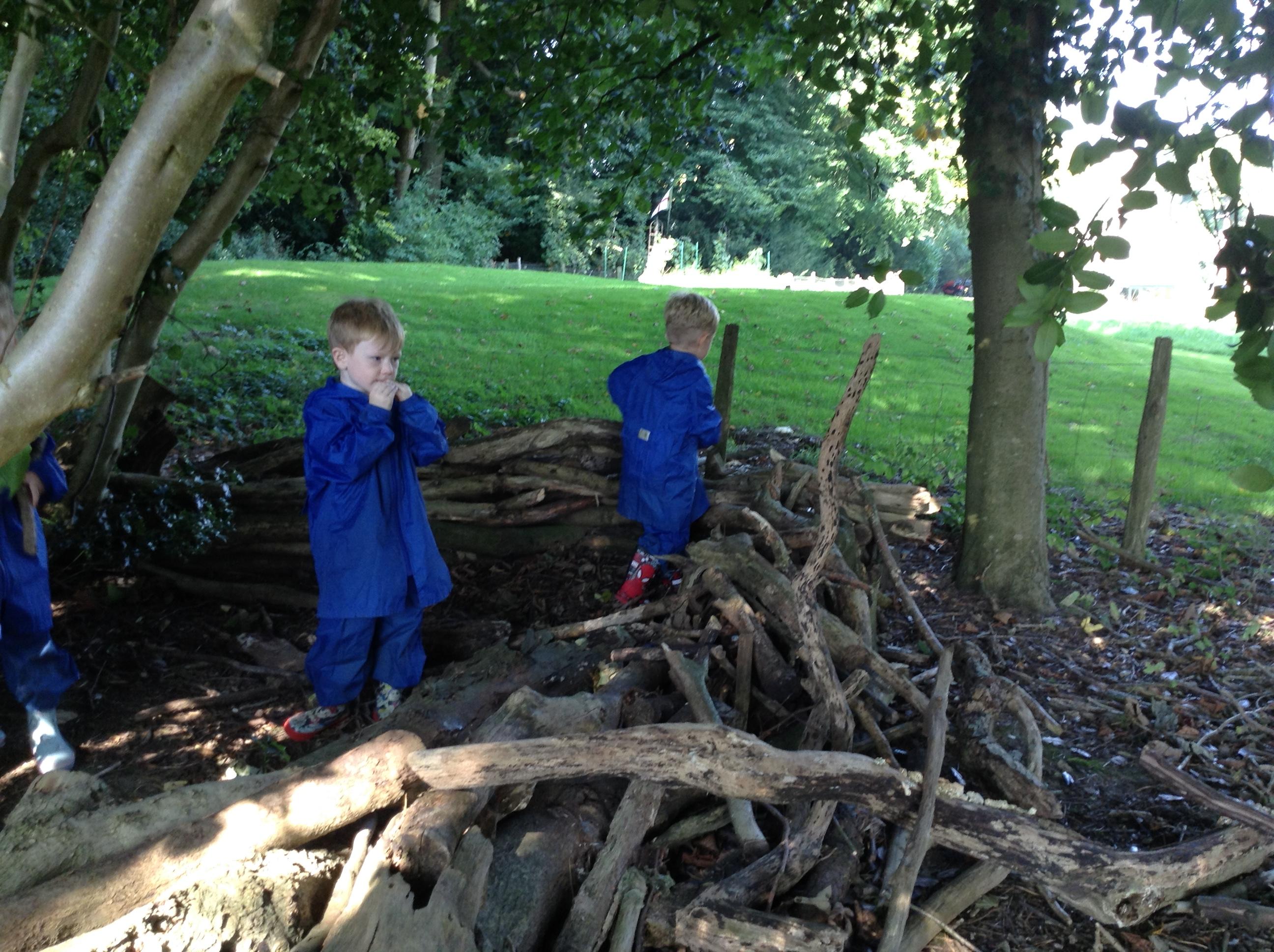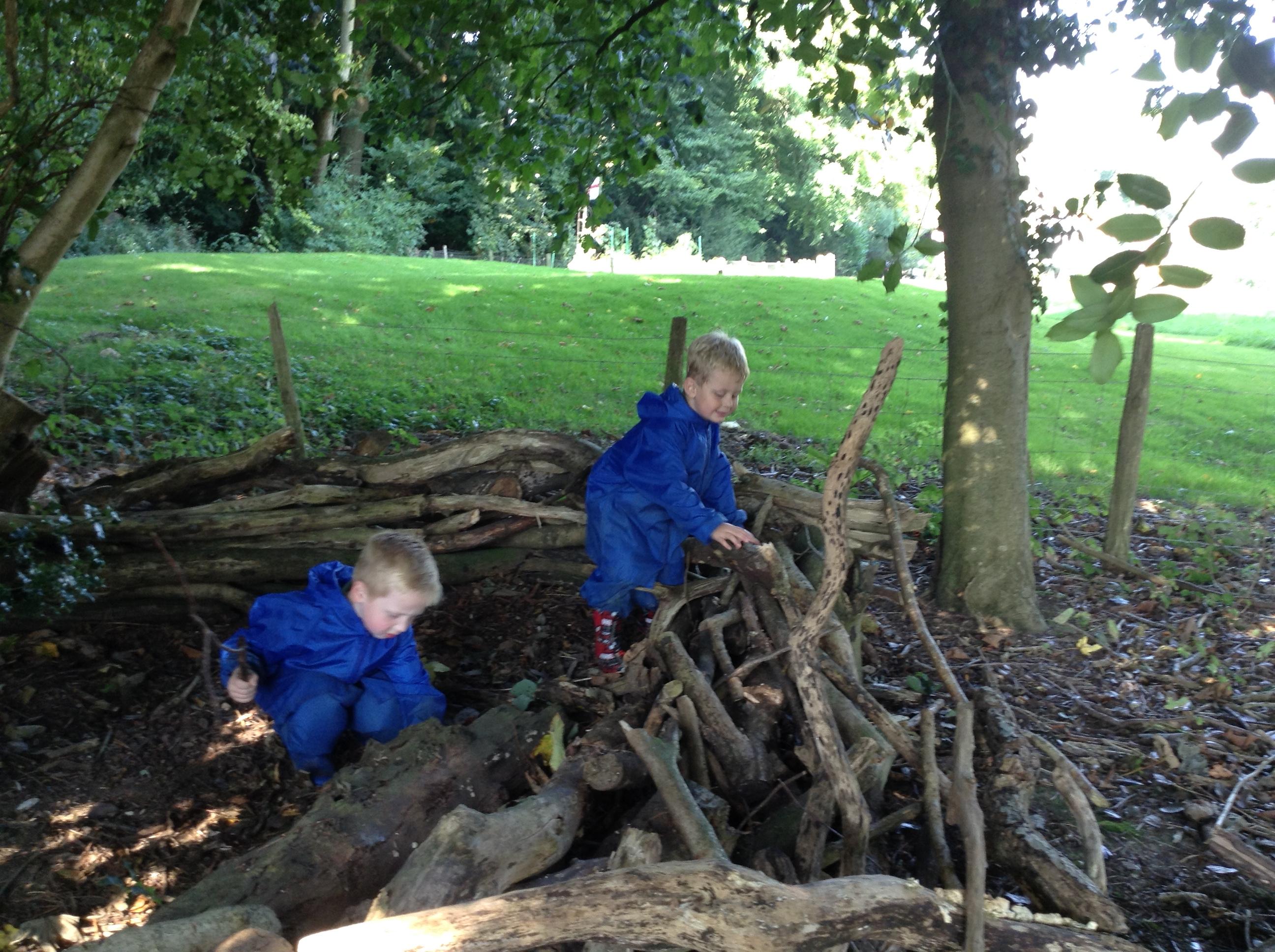 We had a great first session at forest school. The children had fun making animal houses and building with sticks.