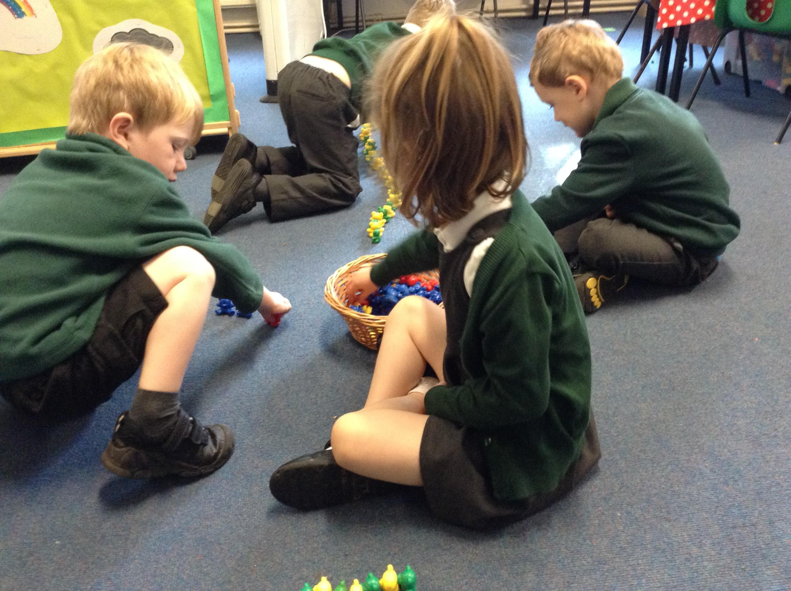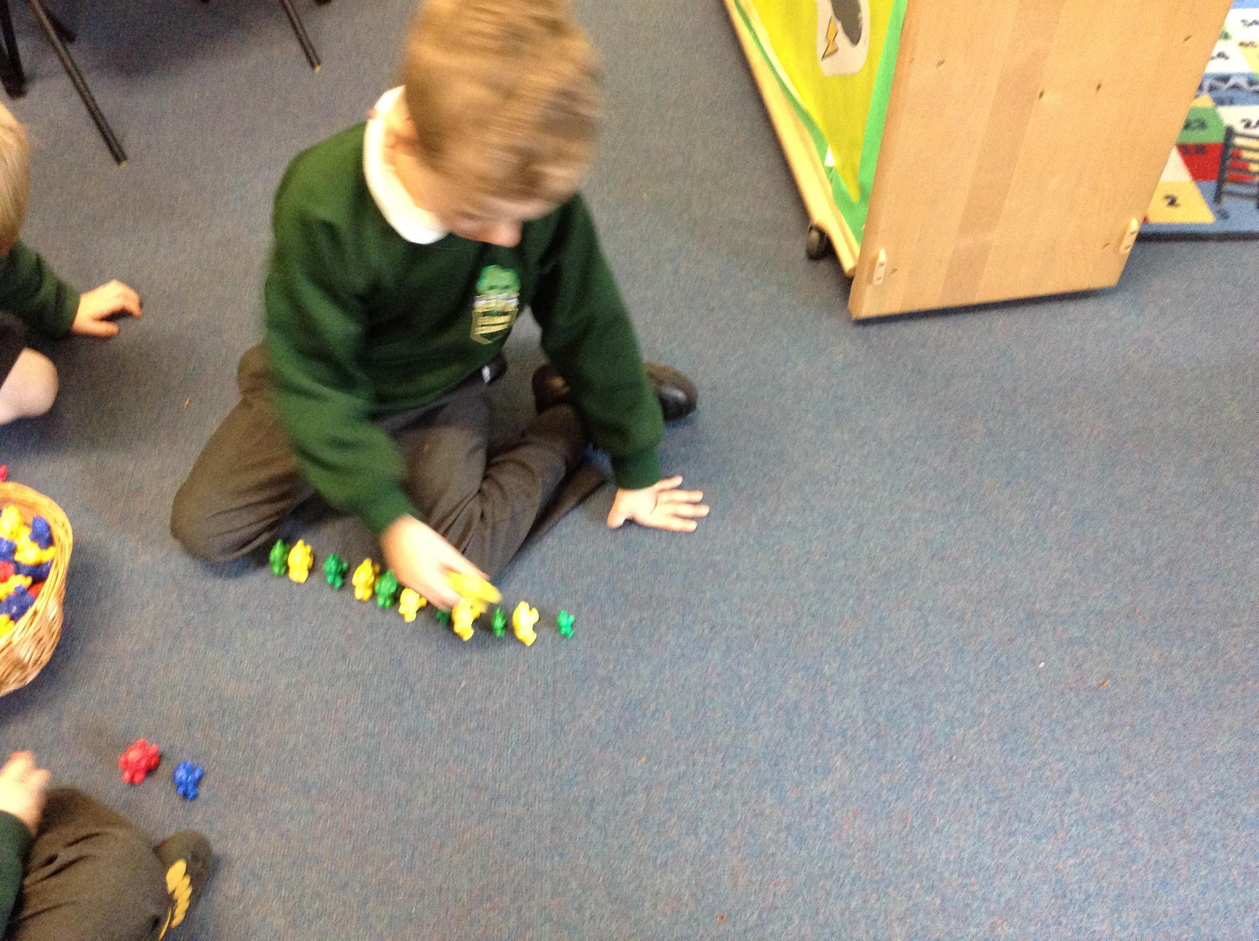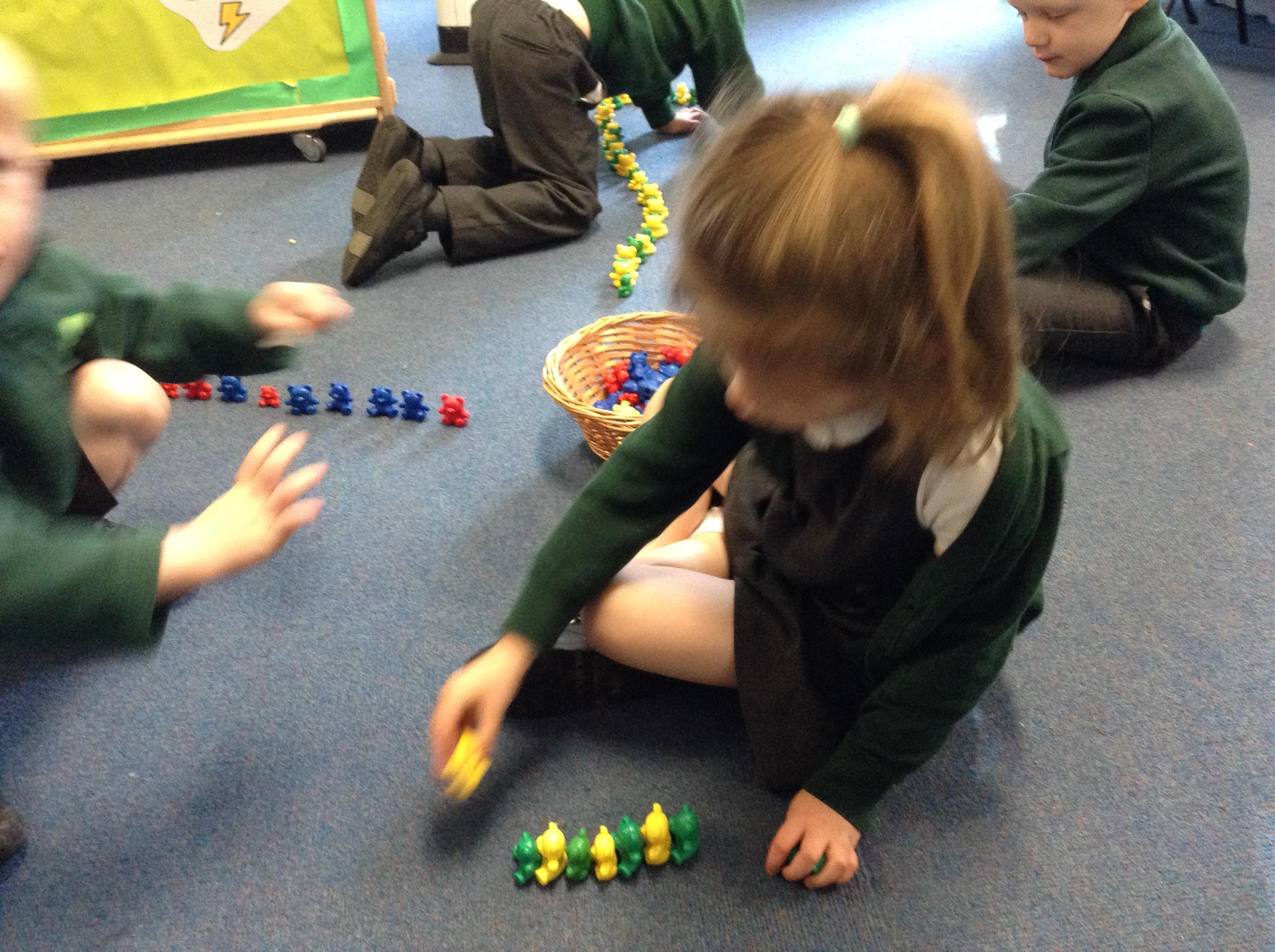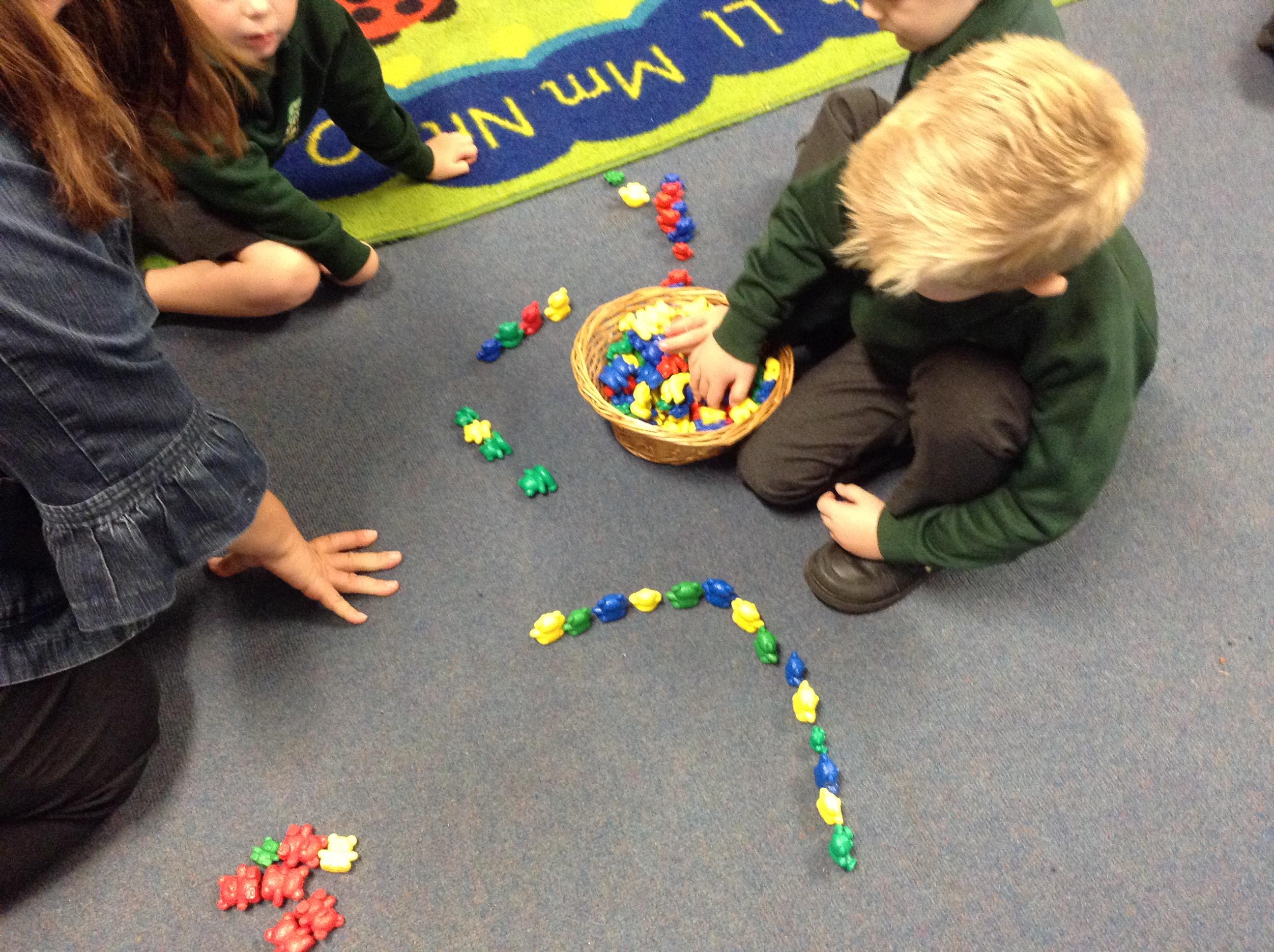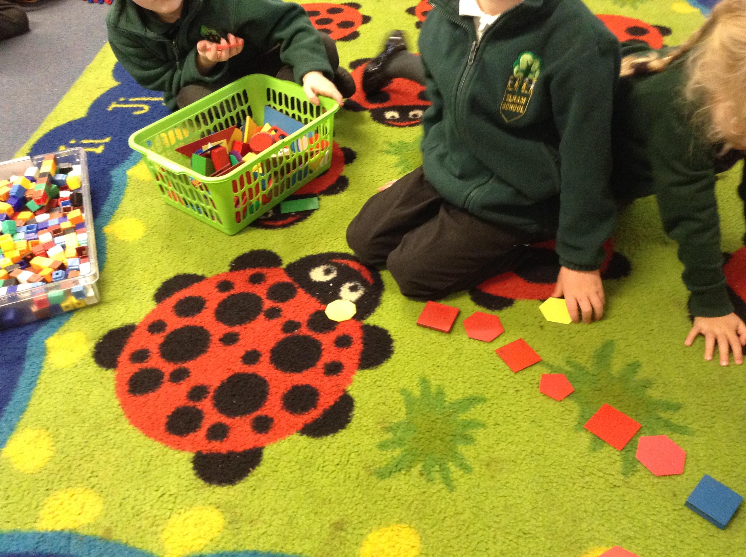 We have been repeating patterns for maths this week, we played games and tried to make our own patterns.