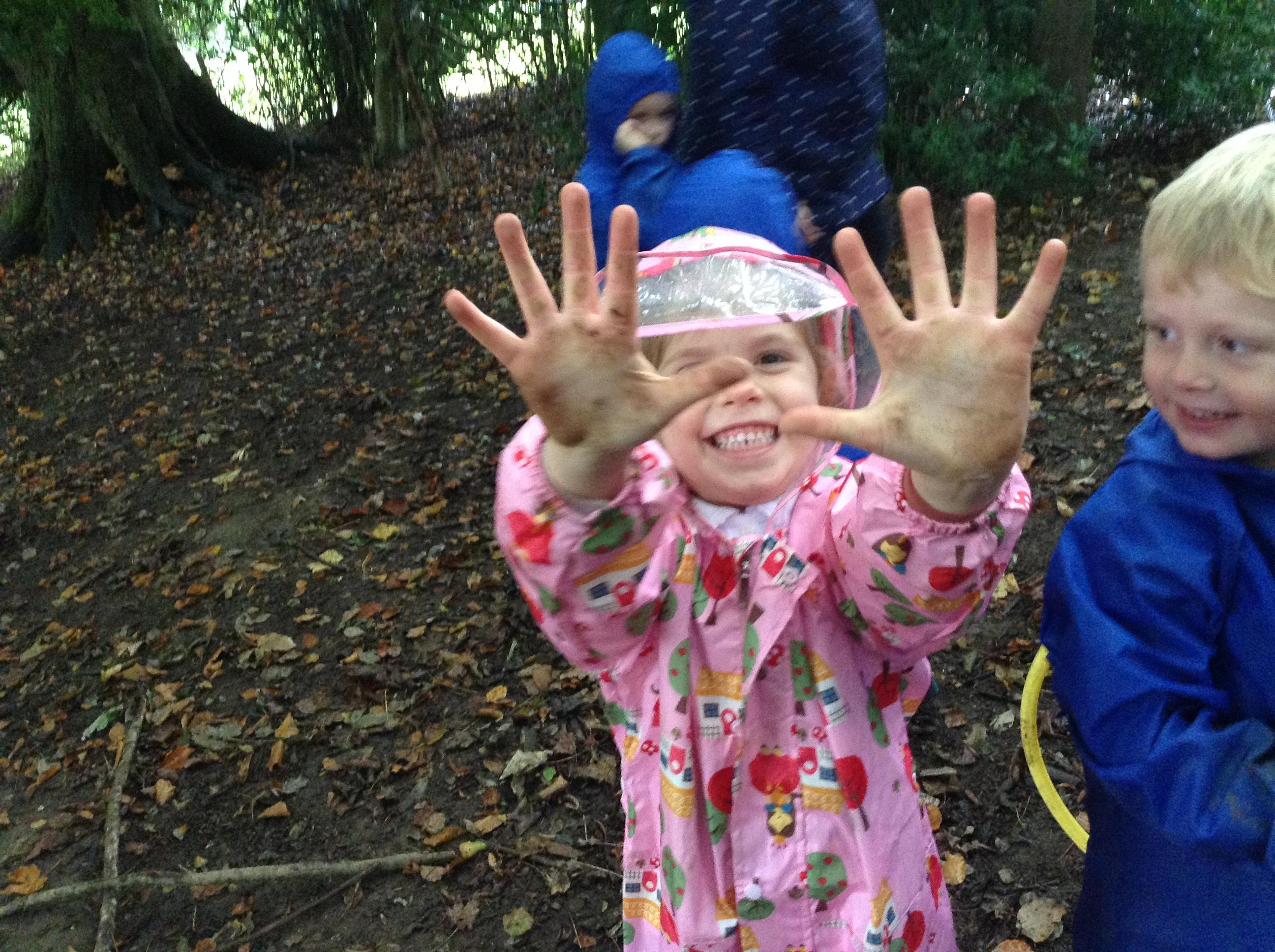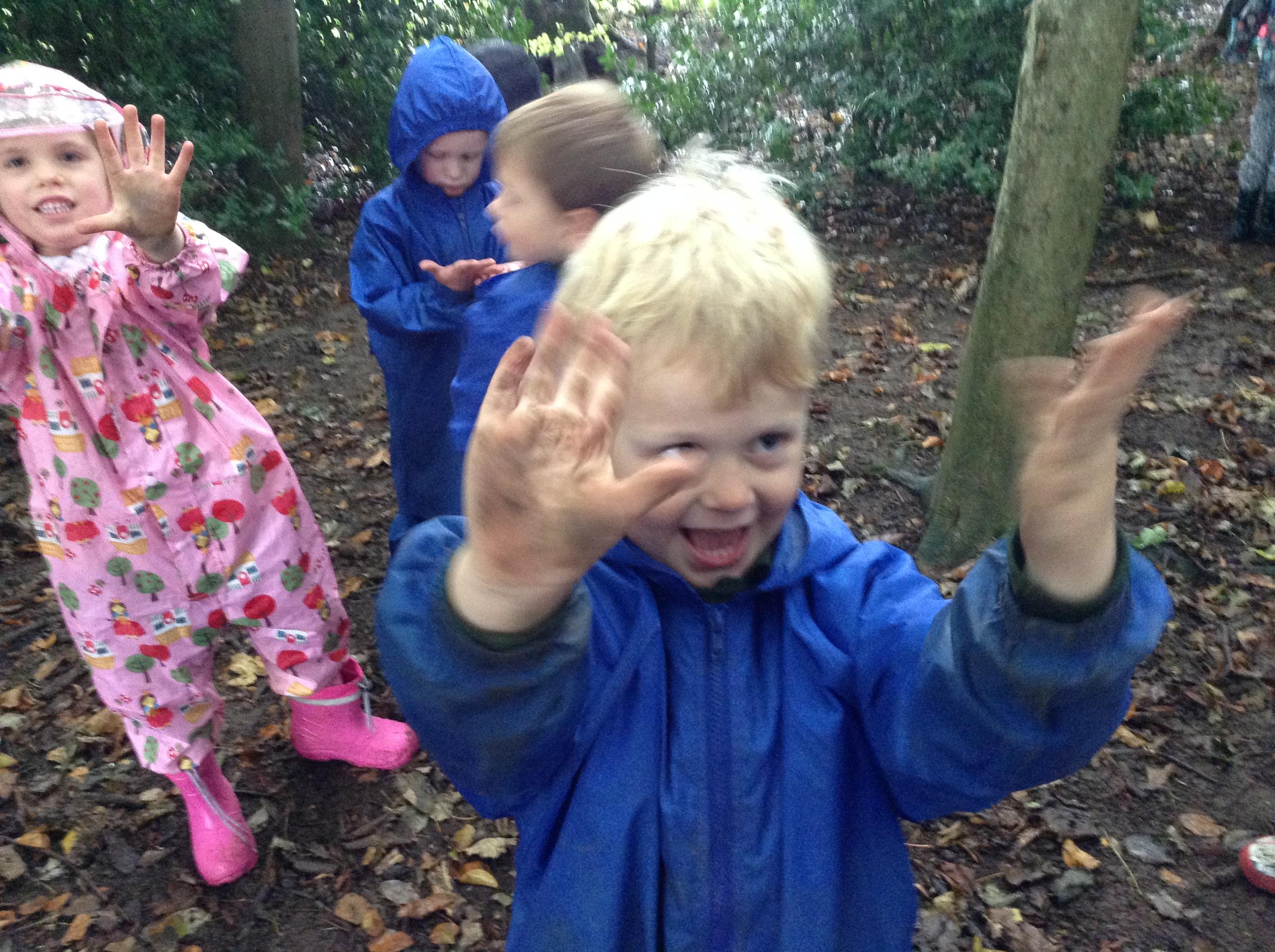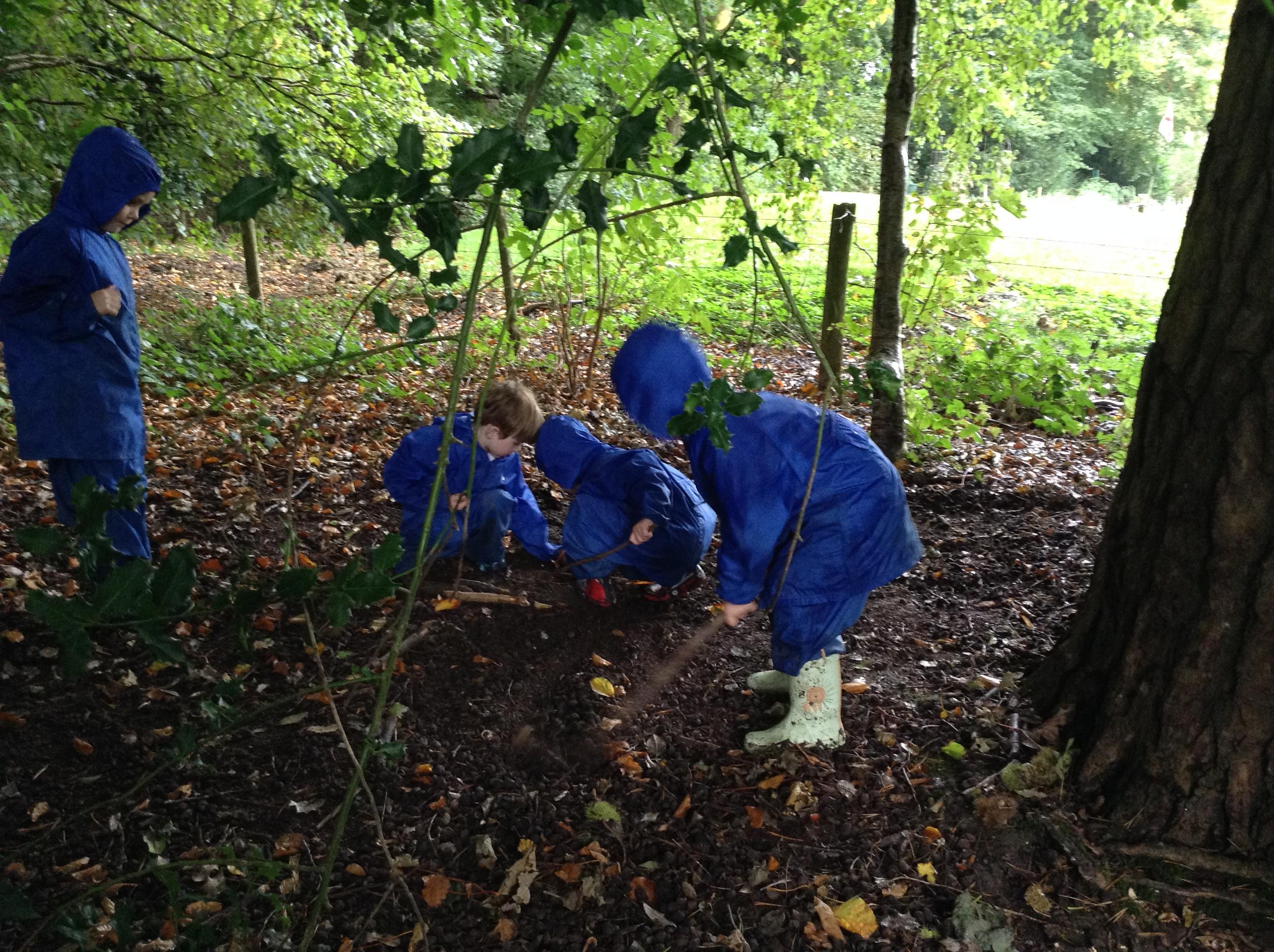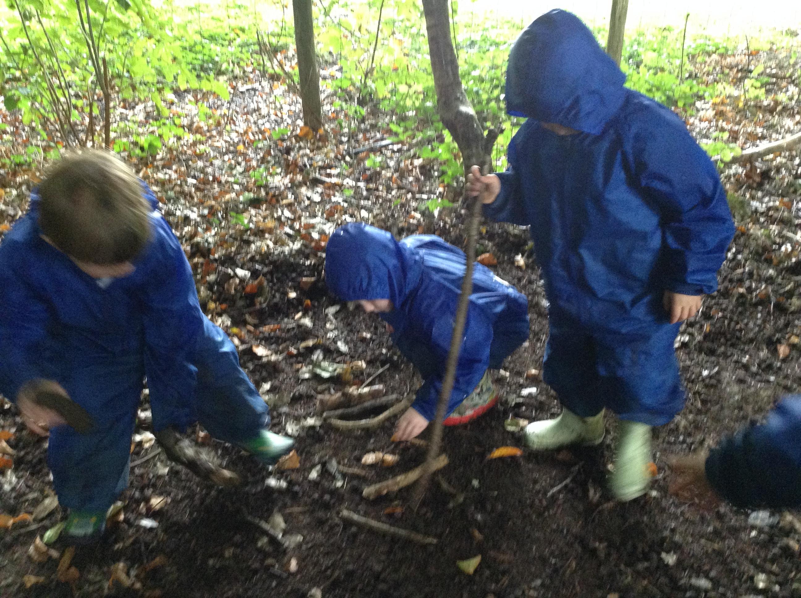 Forest Fun was a bit soggy. The children made lots of stick creations and tracks in the old leaves.
