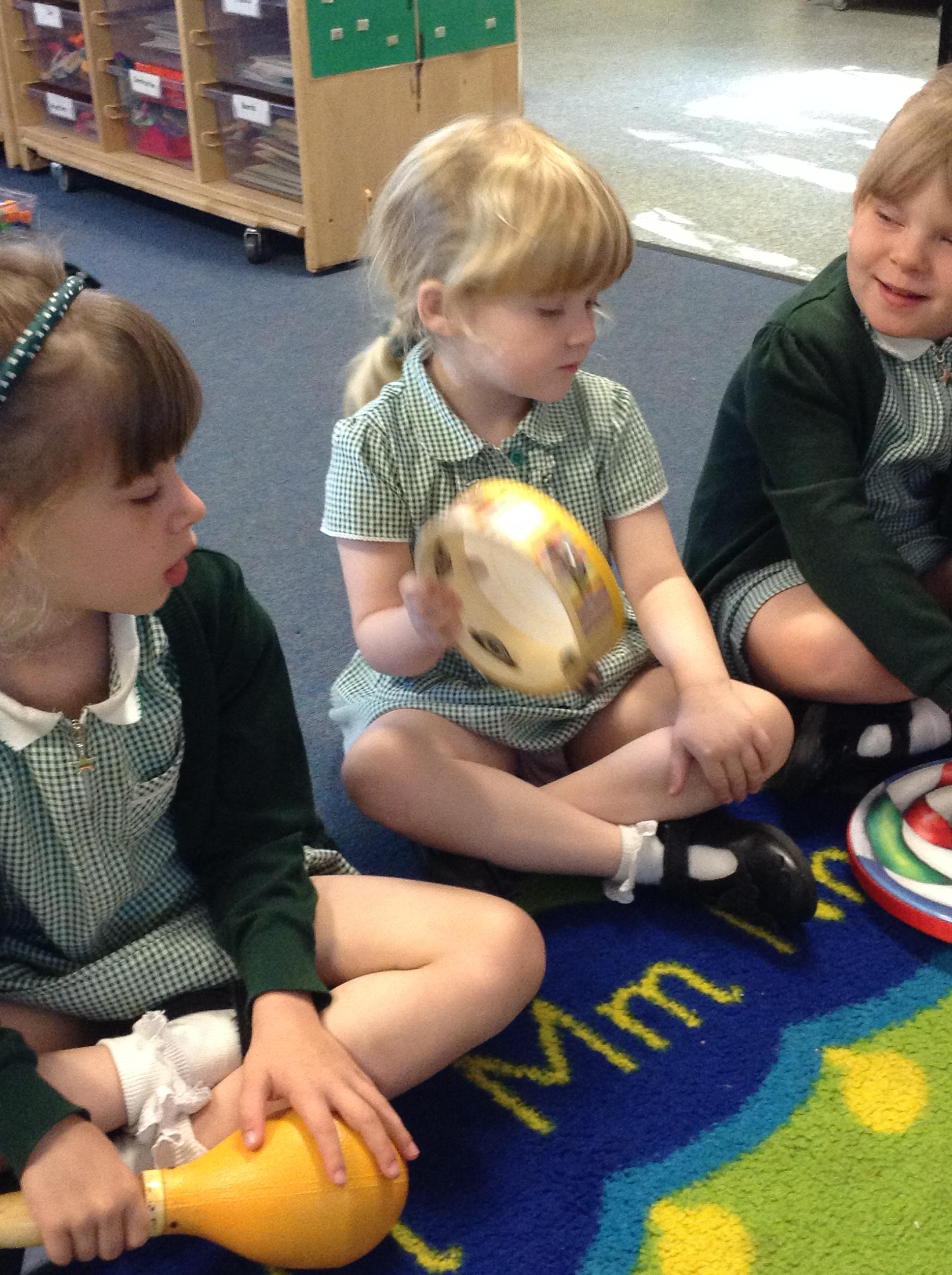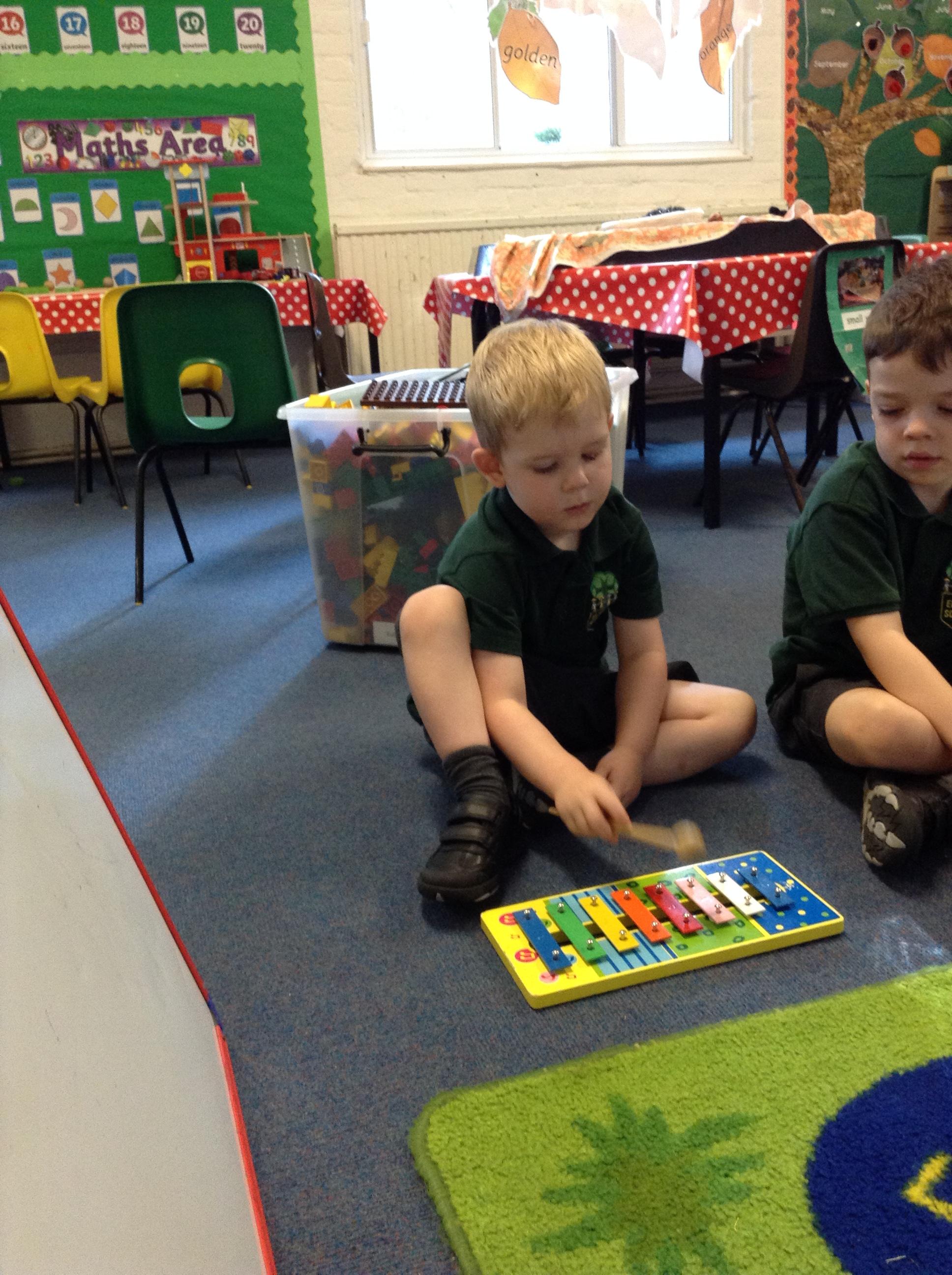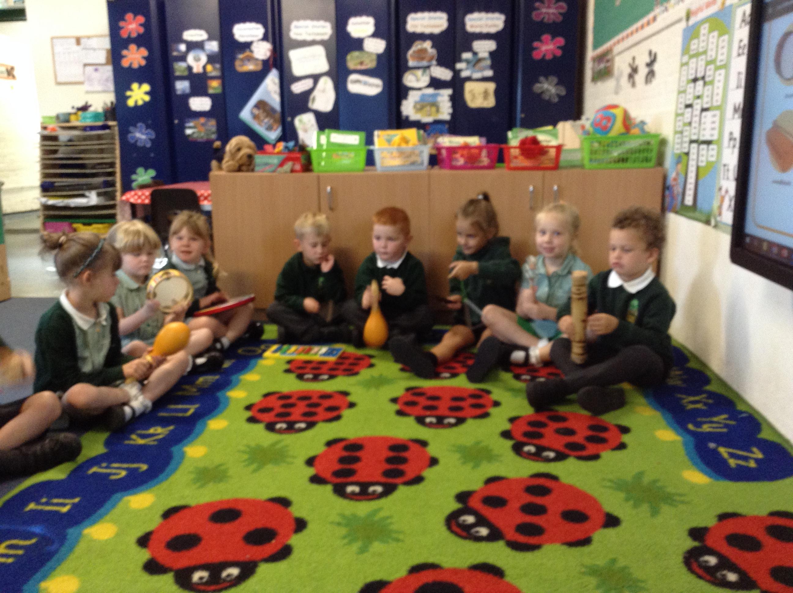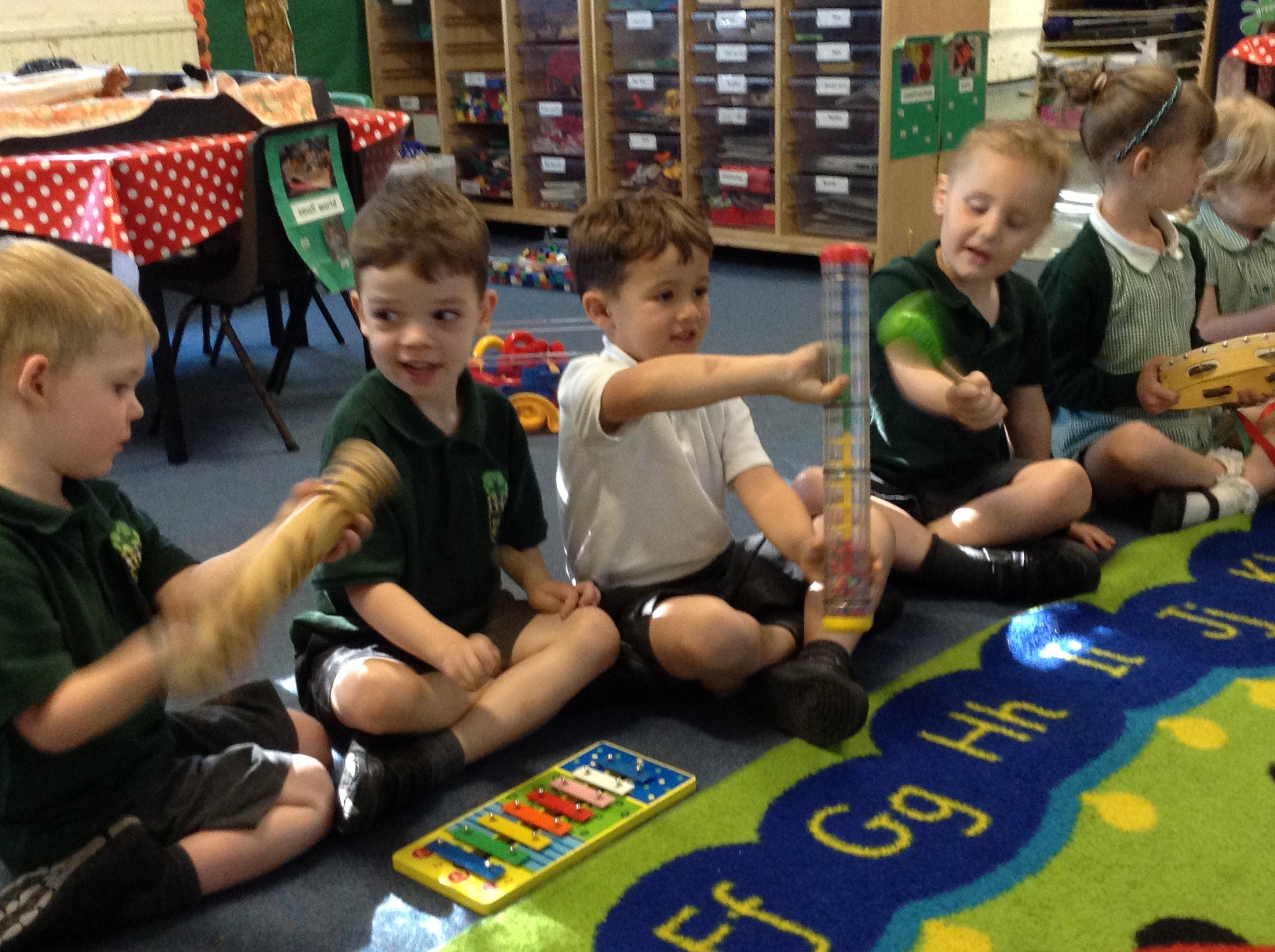 We've had lots of outdoor play which they have all enjoyed. We have also done lots of listening games to begin to tune them in to starting our sound work. This included playing and identifying the musical instruments, it got quite noisy!