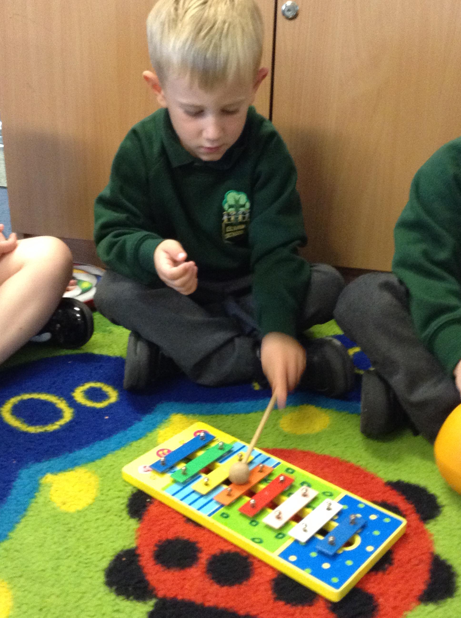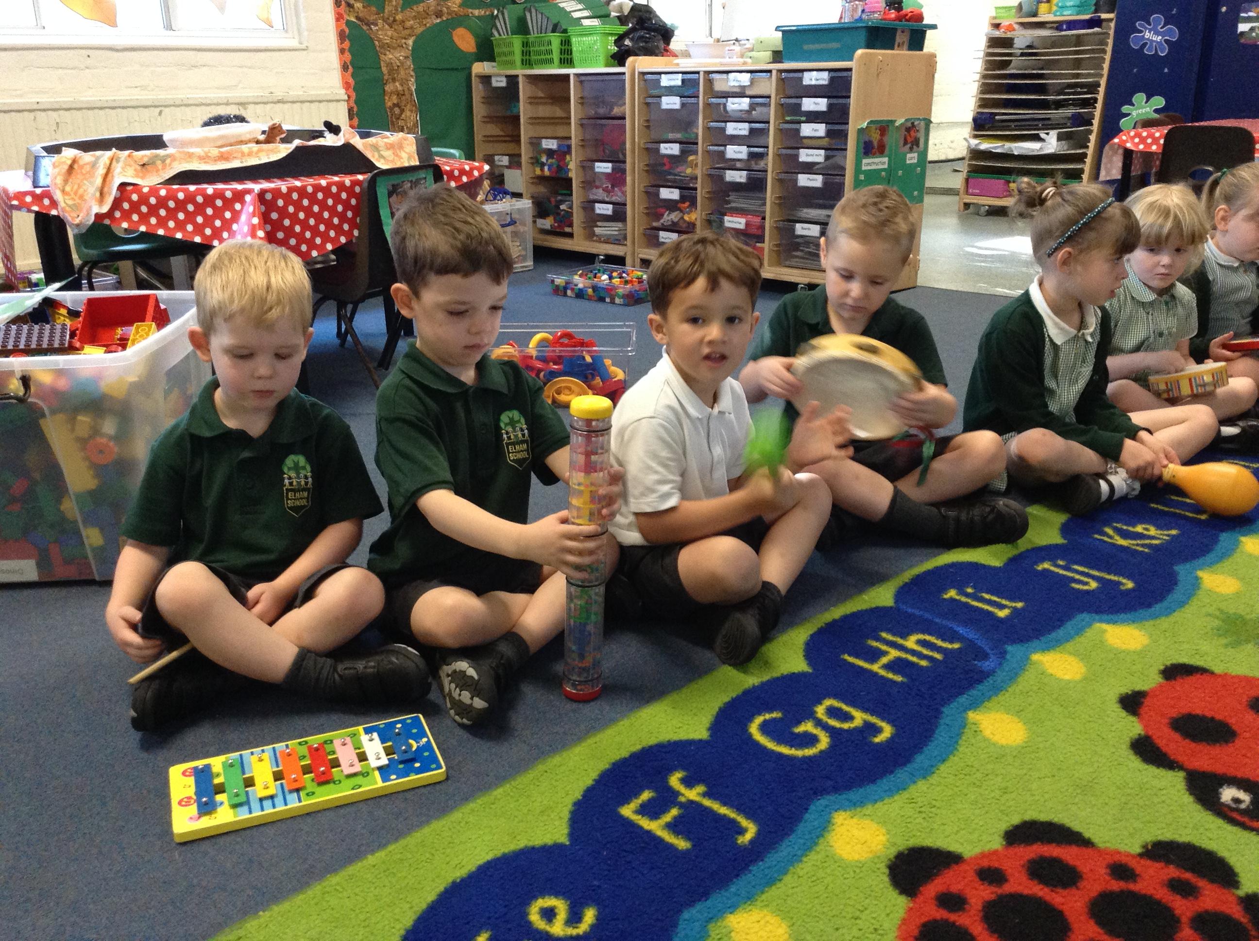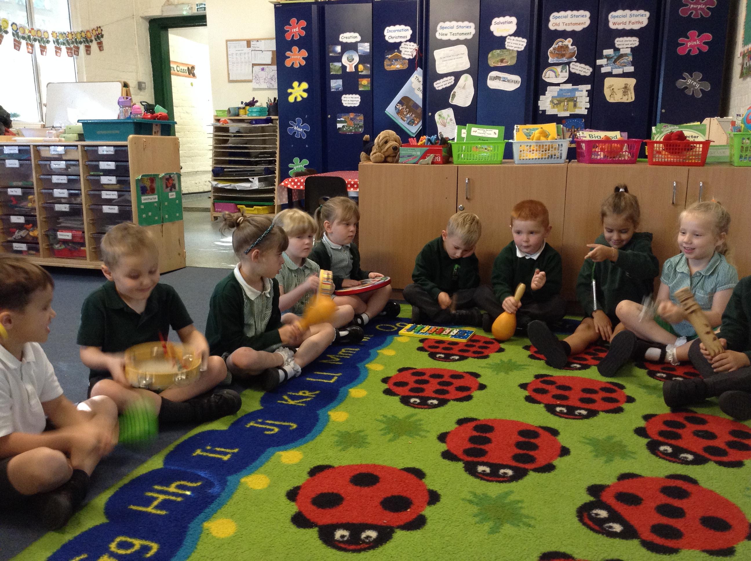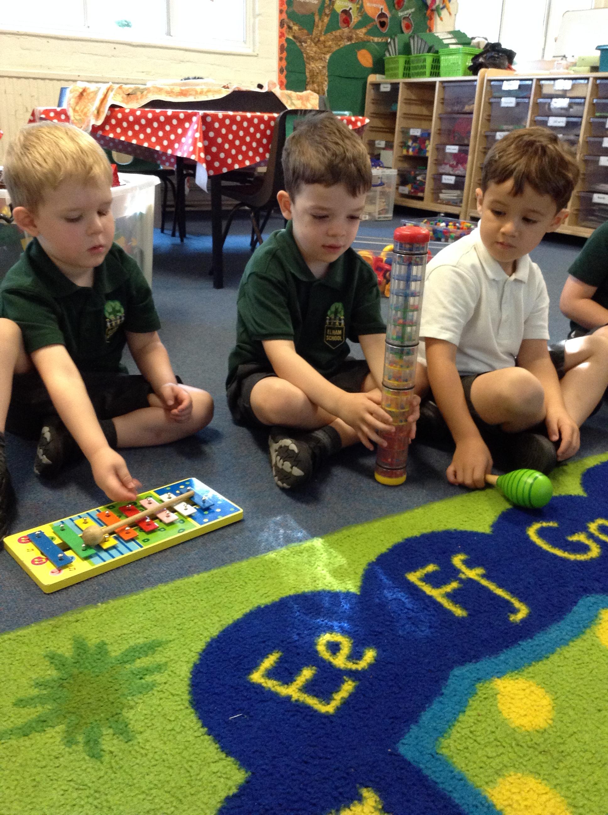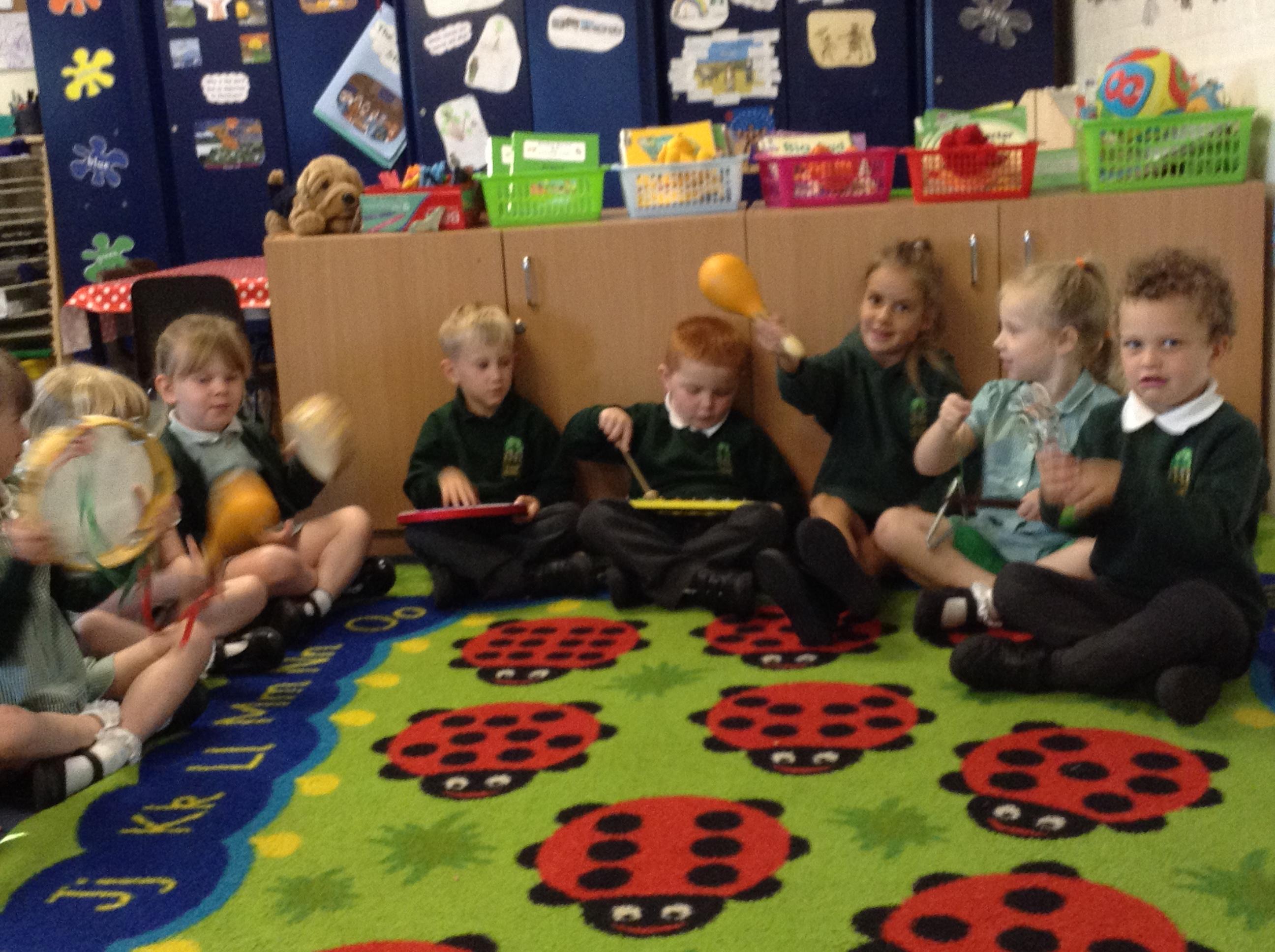 We've had lots of outdoor play which they have all enjoyed. We have also done lots of listening games to begin to tune them in to starting our sound work. This included playing and identifying the musical instruments, it got quite noisy!